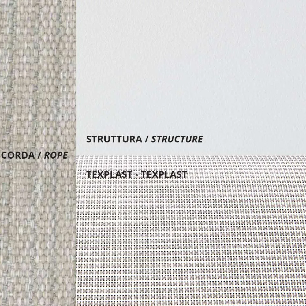 Das Produktdesign zeichnet sich durch solide geometrische Verhältnisse und hochmoderne Mondfarben aus, die es in jeden Kontext integrieren. Die Klappbarkeit erhöht die Funktionalität und macht den Sessel zur perfekten Lösung für kleinere Außenbereiche, in denen die Raumoptimierung eine grundlegende Notwendigkeit darstellt.