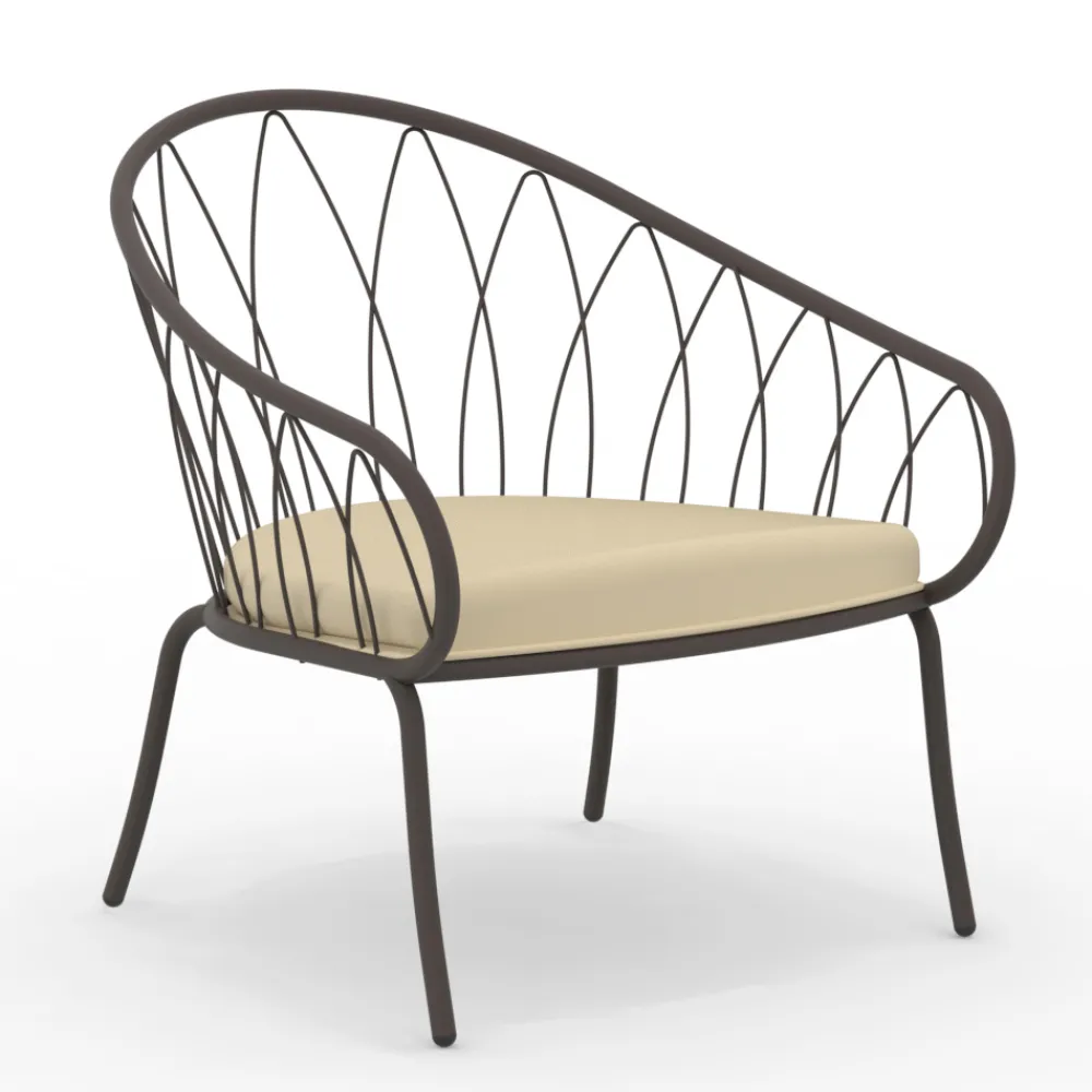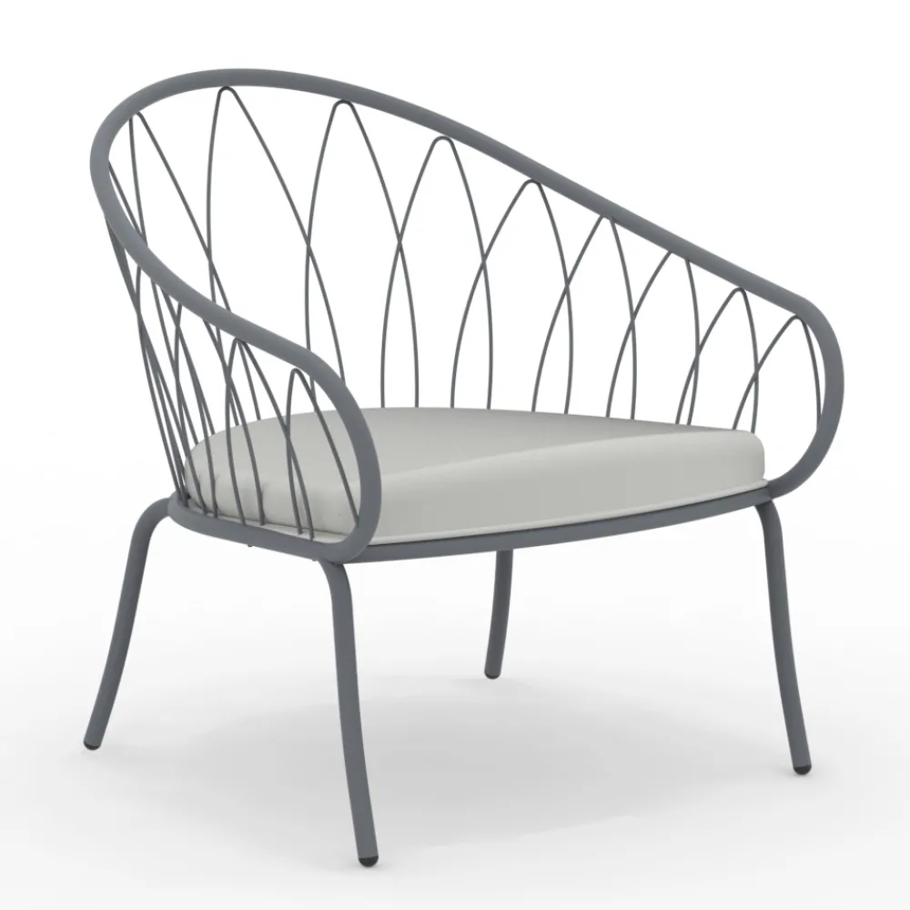 Dieser raffinierte und schlichte niedrige Gartensessel verkörpert Outdoor-Komfort . Der schlanke, pulverbeschichtete Rahmen aus verzinktem Eisen fügt sich harmonisch in seine Umgebung ein, während das geometrische Design einen Hauch von raffinierter Modernität verleiht. Der Kissenbezug wurde so gewählt, dass er maximale Widerstandsfähigkeit gegen Witterungseinflüsse gewährleistet: Er ist wasserdicht und UV-beständig. Die verfügbaren Ausführungen passen perfekt zu jedem Außenbereich , vom üppigen Garten bis zur minimalistischen Stadtterrasse, und machen ihn zu einem vielseitigen Möbelstück für jeden Raum. Stellen Sie sich vor, Sie verbringen Stunden purer Entspannung, eingebettet in die Natur oder in Gesellschaft von Freunden, und lassen Sie sich von den weichen Kissen und der eleganten Silhouette dieses Sessels umhüllen, einem wahren Designjuwel für Ihren Außenbereich.