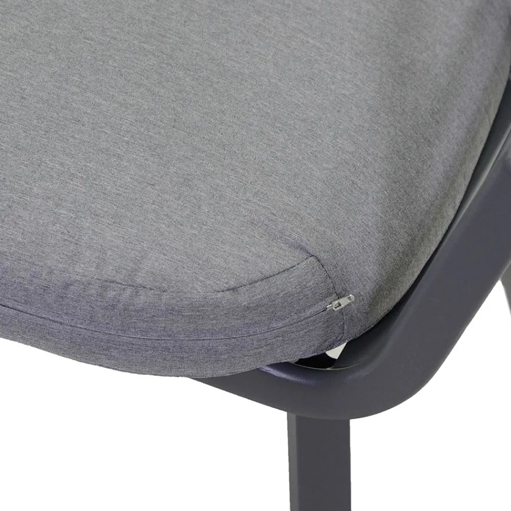 Der robuste Aluminiumrahmen sorgt für Haltbarkeit und Witterungsbeständigkeit, während seine neutrale Farbe und elegante Form sich perfekt in jede Außeneinrichtung einfügt. Ideal für alle, die kompromisslosen Stil und dauerhaften Komfort suchen.