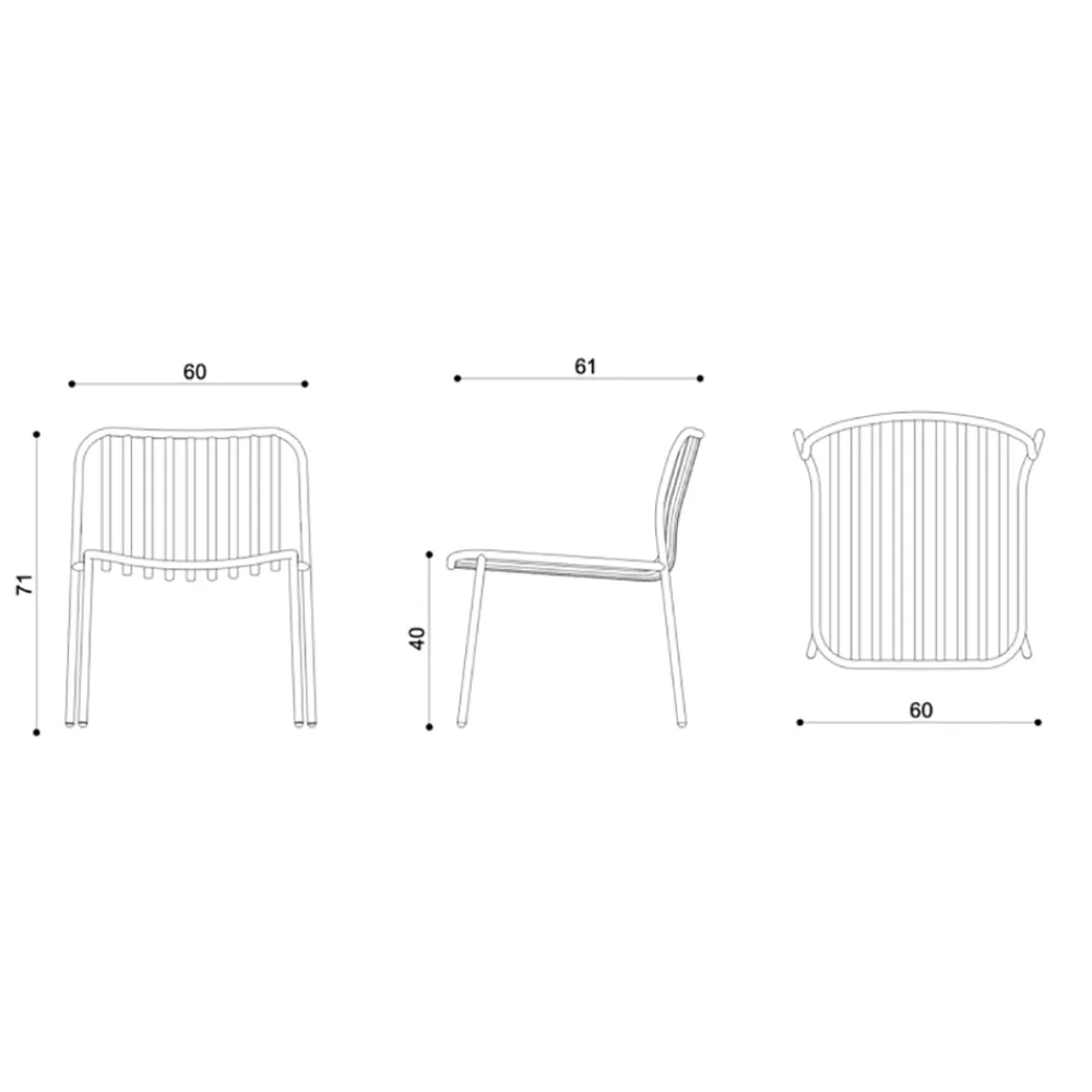 Komplett in Italien hergestellter Gartensessel mit stapelbarer Struktur aus lackiertem Metall, gekennzeichnet durch Rückenlehne und Sitz mit Drahtgewebe mit vertikalen ovalen Formen, die harmonisch und geschwungen den ergonomischen Formen der Struktur folgen und sich am besten an die Silhouette des Körpers anpassen, um optimalen Komfort zu bieten . Ein Möbelstück, das durch die Verwendung hochwertiger Rohstoffe Festigkeit und hervorragende Beständigkeit gegen Witterungseinflüsse bietet und sich mit seiner einzigartigen Persönlichkeit als perfekt für die Dekoration jedes Außenbereichs erweist.