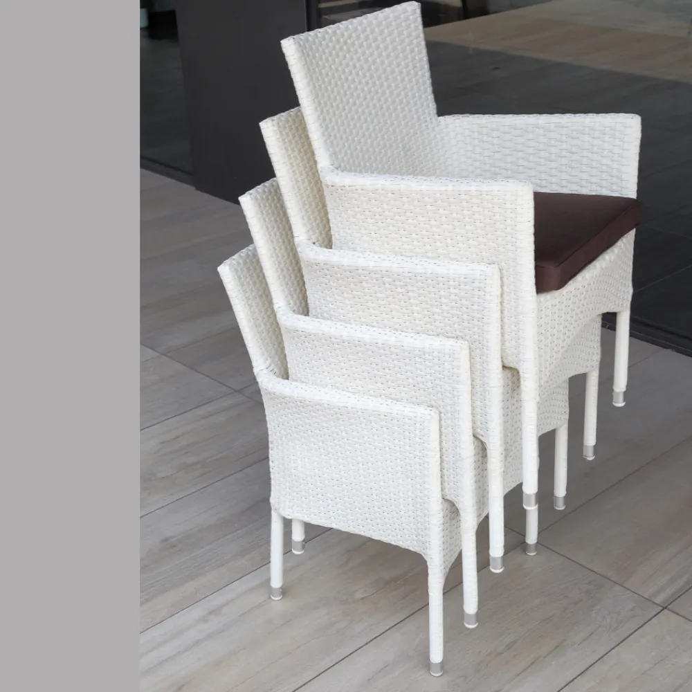 Sein weißer, geflochtener Korbbezug sorgt für einen eleganten und luftigen optischen Effekt, perfekt für alle, die einen natürlichen, aber raffinierten Stil lieben. Das stapelbare Design macht ihn äußerst funktional und platzsparend , ideal sowohl für Wohn- als auch für Objektbereiche wie Hotels , Restaurants oder Außenbereiche .