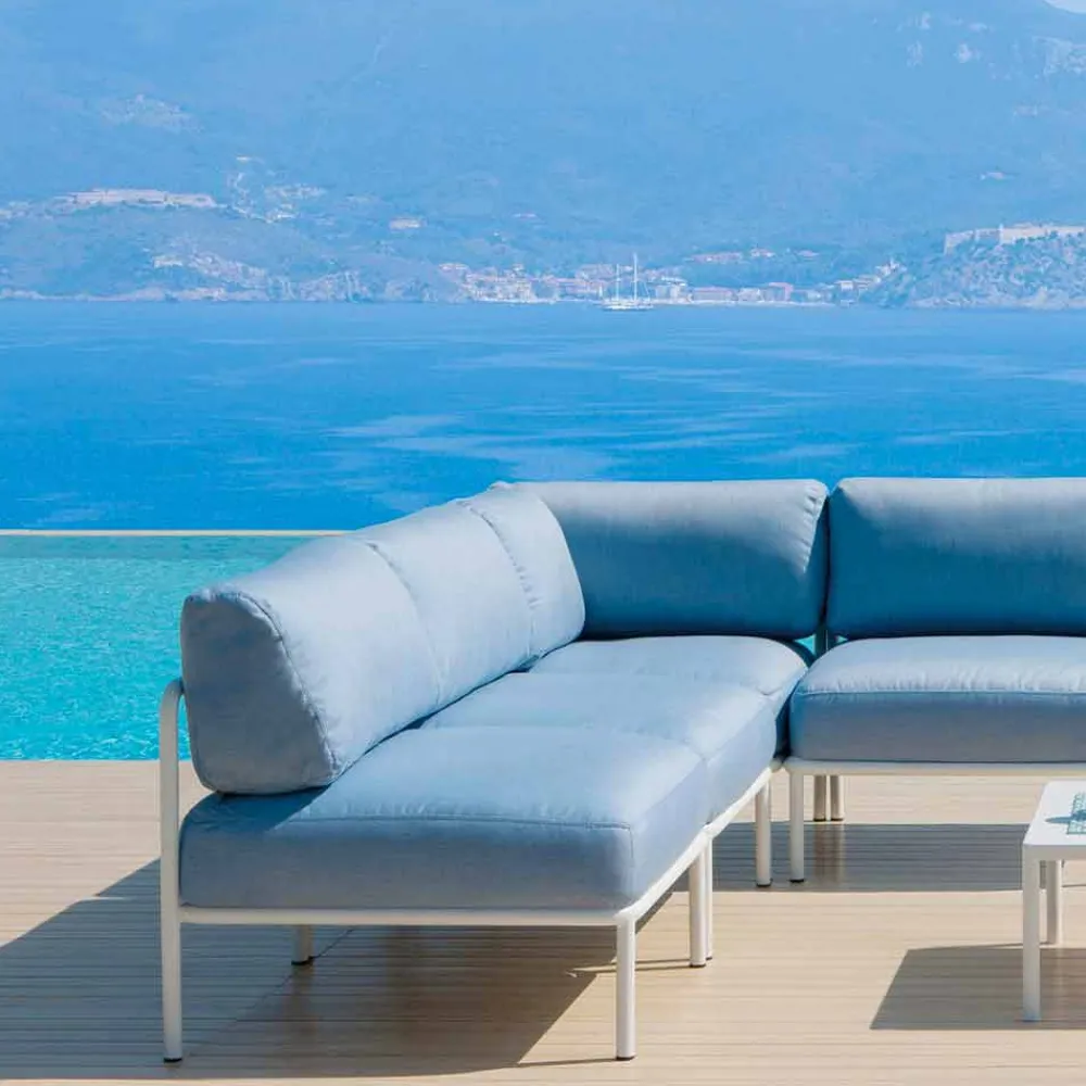 Modularer zentraler Outdoor-Sessel aus pulverbeschichtetem verzinktem Eisen und Stoff im Made in Italy-Design.