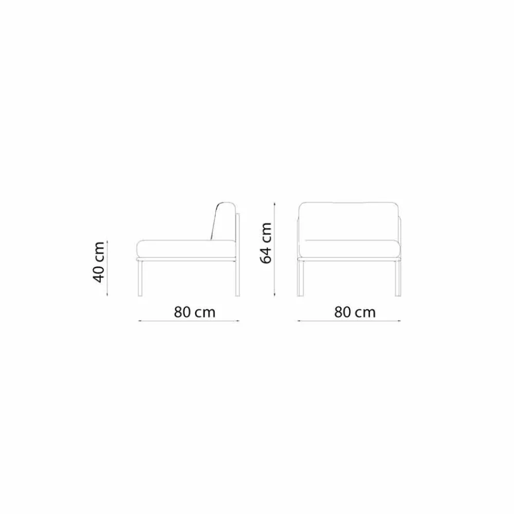 Zentraler modularer Outdoor-Sessel, komplett in Italien aus hochwertigen Rohstoffen hergestellt , ideal für die Gestaltung eleganter und einzigartiger Wohnzimmerkompositionen. Dank seines minimalistischen, aber raffinierten Designs und der verfügbaren Farben ist er vielseitig einsetzbar und passt sich daher an verschiedene Umgebungen an, indem er die Aufmerksamkeit auf die Wesentlichkeit der Linien lenkt.