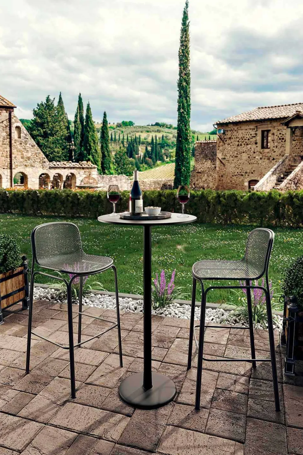 Viviette ist ein bequemer und moderner Außenhocker, der vollständig aus Metall und Drahtgeflecht besteht und es schafft, traditionelle Linien und sein zeitgemäßes Design perfekt zu kombinieren, wodurch der Hocker auch dank der vorhandenen Rückenlehne solide und bequem wird. Vviviette ist in 5 Farbvarianten erhältlich, die es ermöglichen, jeder Umgebung Persönlichkeit zu verleihen. Es ist ein stapelbarer Hocker mit maximal 6 Einheiten , mit dem Sie den Raum optimal optimieren können.