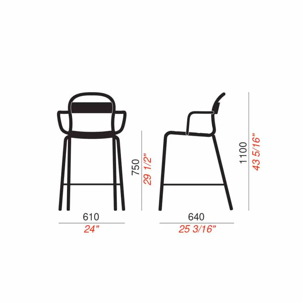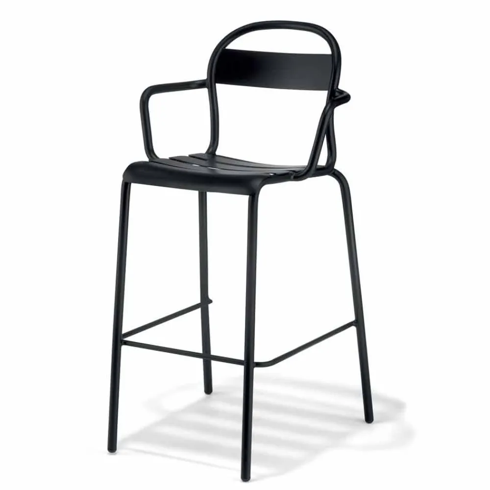 Selima ist ein hoher Outdoor-Hocker mit einem modernen und eleganten Design, das sich durch ein zeitloses und vielseitiges Design auszeichnet. Der Hocker besteht vollständig aus Aluminium und eignet sich daher perfekt für den Einsatz in Hochküchen oder Stangen im Außen- und Innenbereich sowie für den häuslichen und nicht häuslichen Gebrauch. Er ist mit Armlehnen für mehr Komfort ausgestattet.