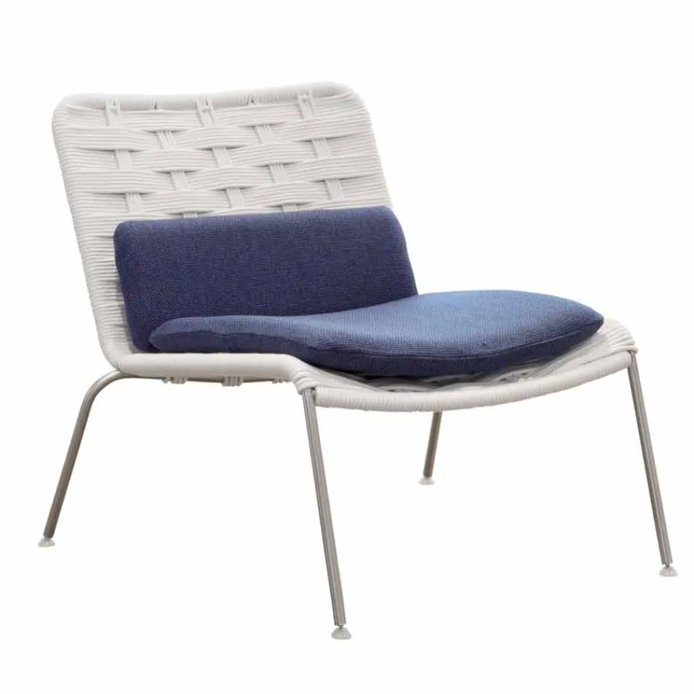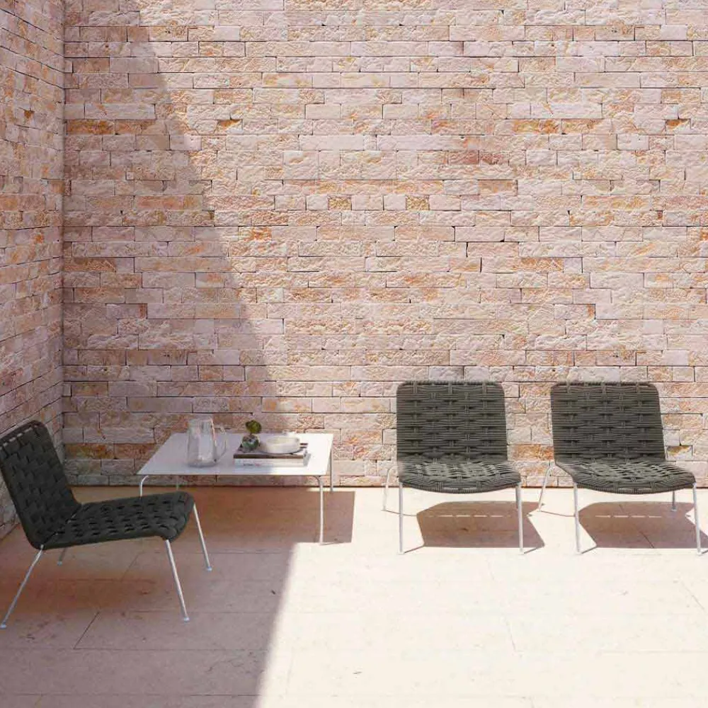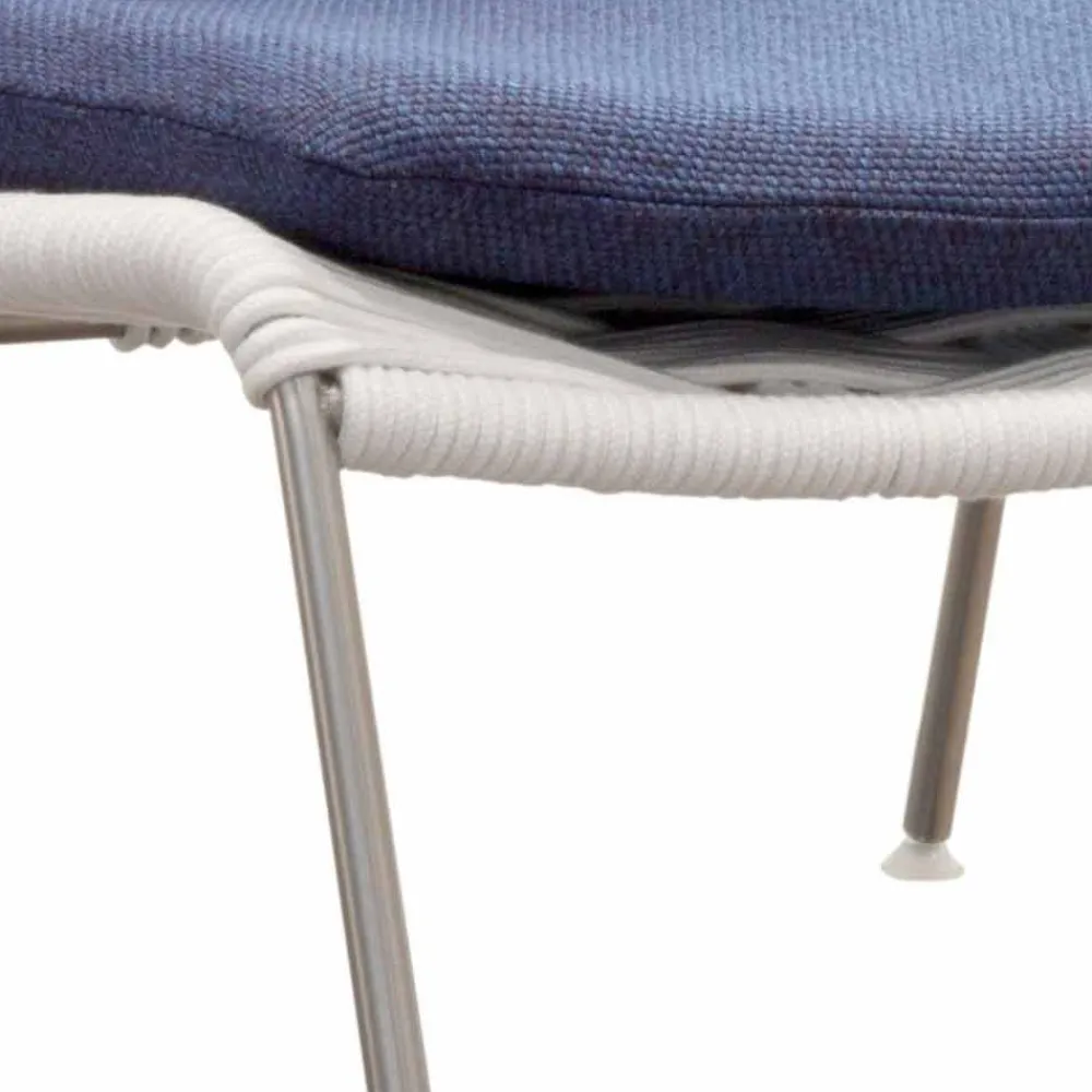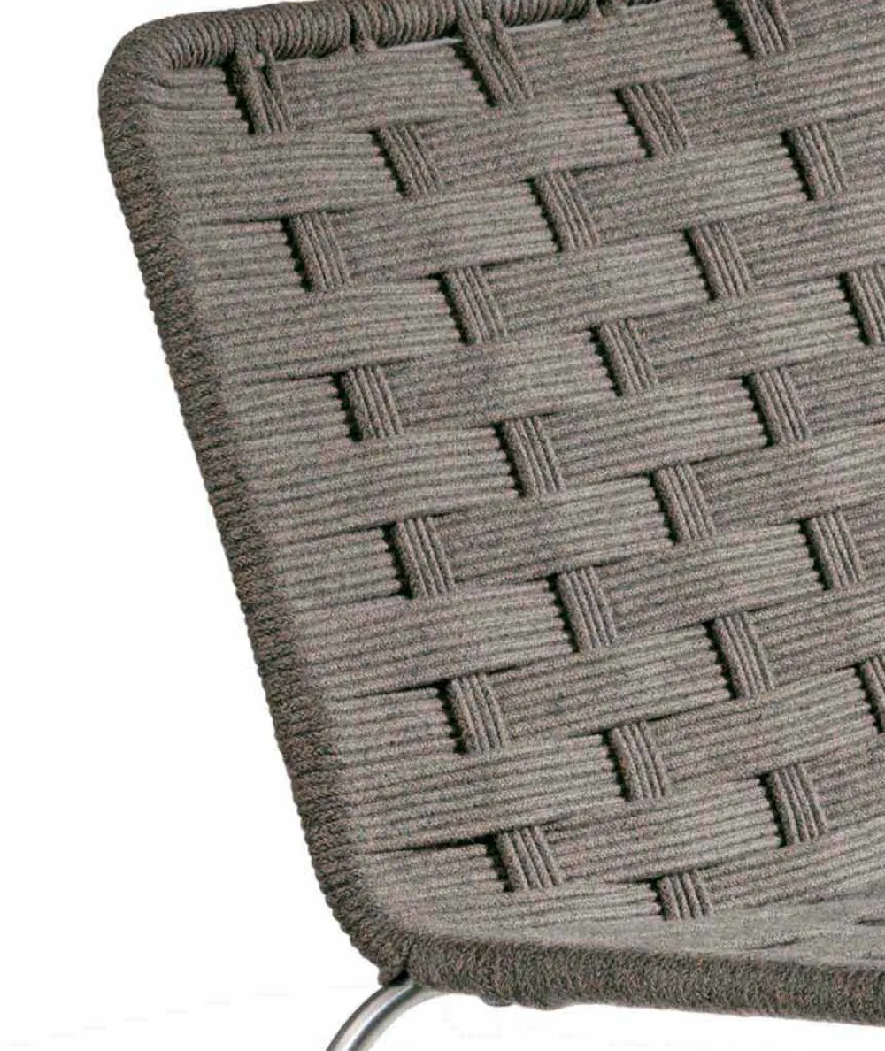 Moderner Outdoor-Sessel aus Stahl und weißer oder taubengrauer Kordel, hergestellt in Italien.