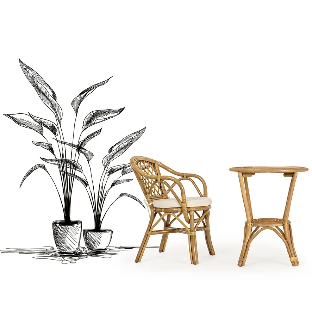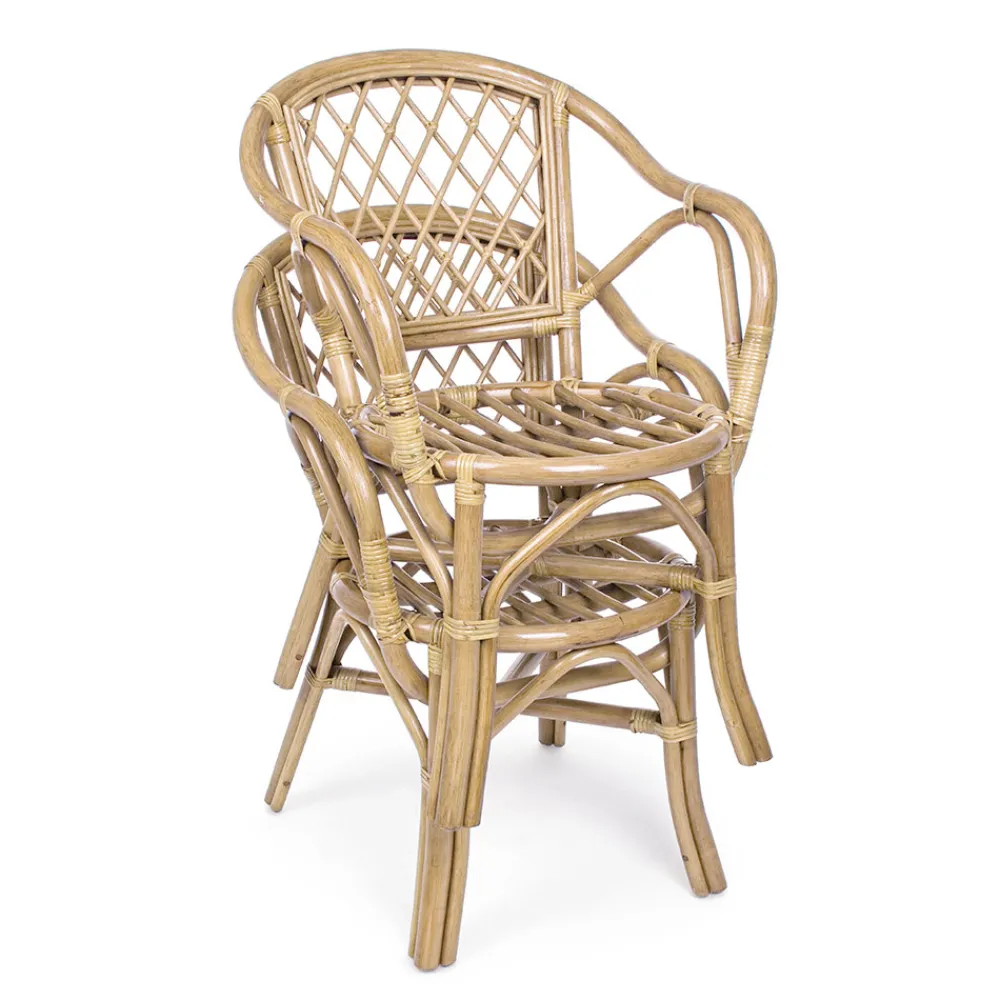 Gartensessel aus natürlichem Rattan für den Außenbereich, bequem stapelbar.