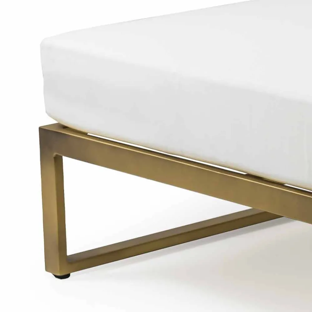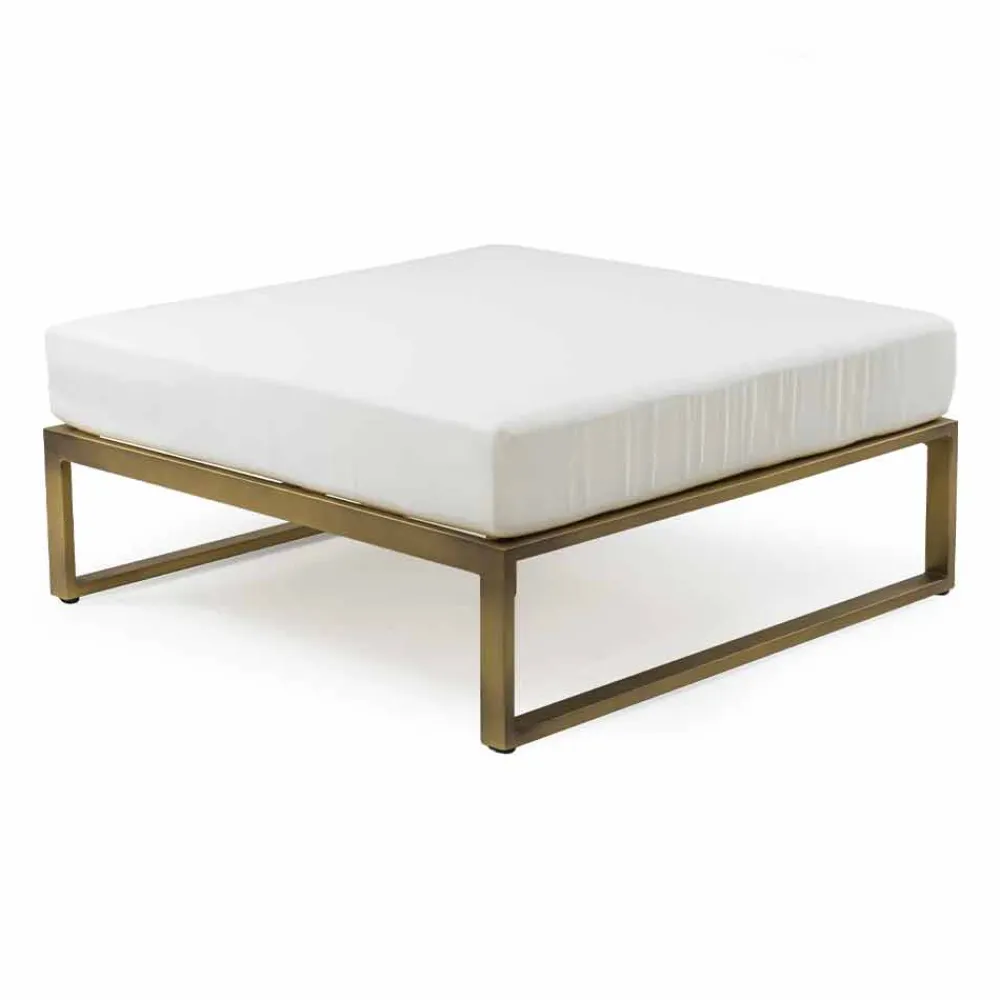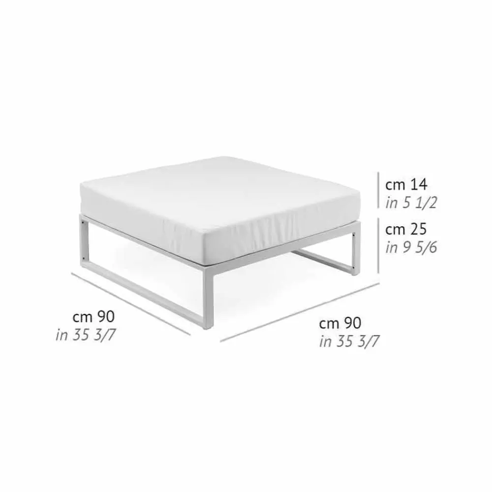 Quadratischer Hocker für das Wohnzimmer im Freien mit Aluminiumstruktur in 3 Ausführungen und weißem Stoffkissen, luxuriöses Design.