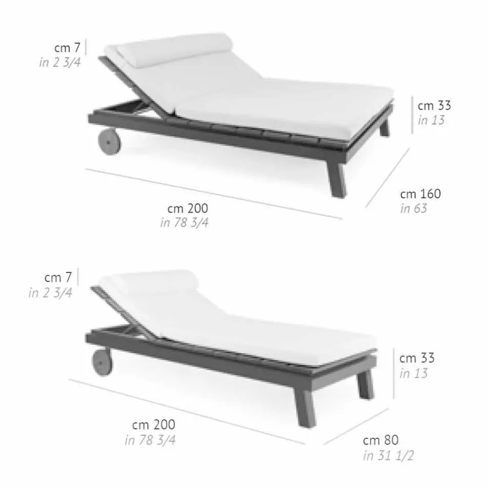 Diese Sonnenliege für den Außenbereich zeichnet sich durch eine Strukturgeometrie aus Aluminium aus, die mit Epoxidpulvern in zwei Ausführungen lackiert ist.