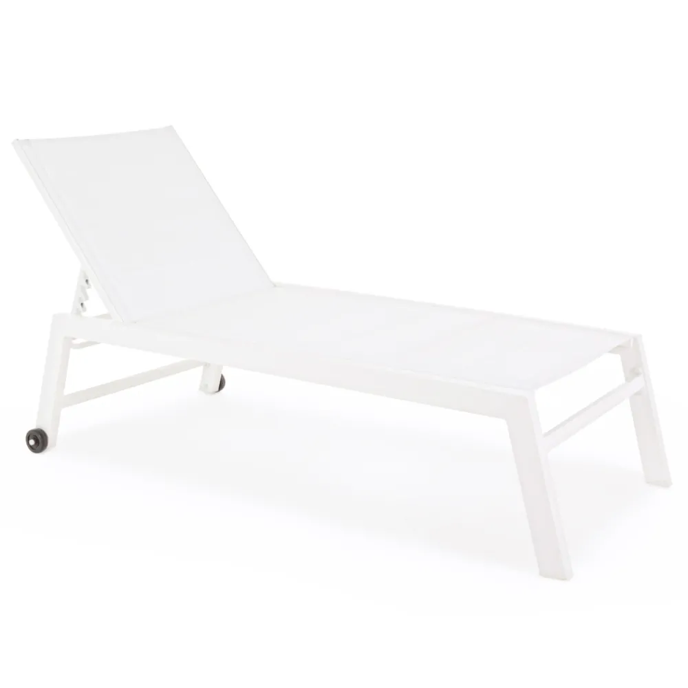 Garten-Chaiselongue aus Aluminium mit Rädern für den Außenbereich.