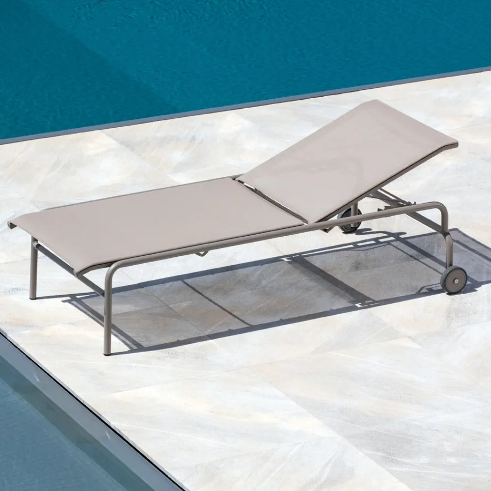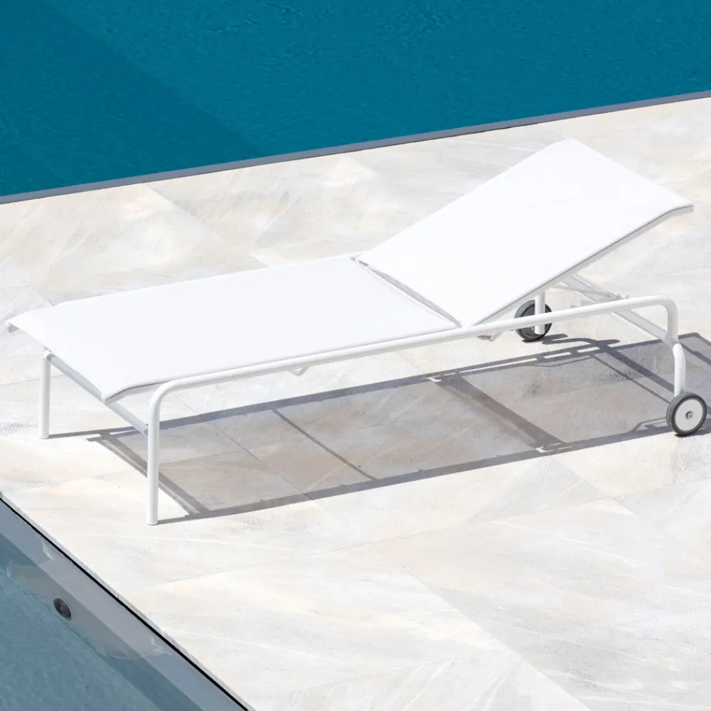 Gartenliege mit verzinktem Stahlrahmen und Texplast-Sitz , komplett in Italien hergestellt . Die Verzinkung und die Besonderheit des Texplast-Gewebes machen die Liege beständig gegen die korrosive Wirkung von Witterungseinflüssen wie Salz und Säure des Regens und daher perfekt für die Einrichtung jeder Art von Außenbereich.