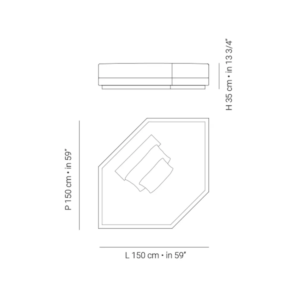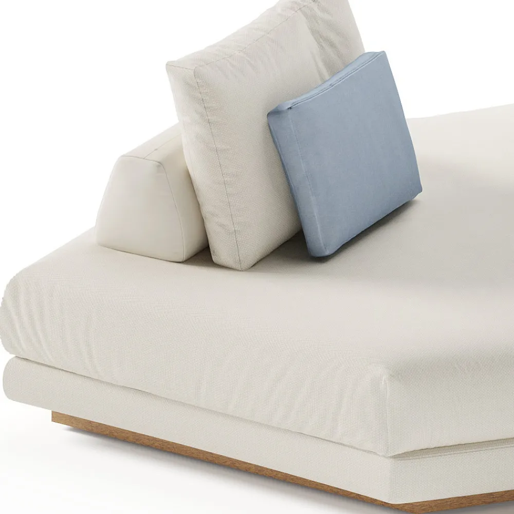 Eck-Gartenchaiselongue, vollständig in Italien hergestellt , mit Sitz und Rückenlehne aus Stoffpolsterung . Das Produkt besteht aus einem niedrigen und tiefen Sitz und wird dank seiner Form zu einem einladenden und einladenden System, das eine entspannte und informelle Atmosphäre schaffen soll. Diese Eck-Chaiselongue ist perfekt, um jede Umgebung einzigartig zu machen, und bietet die Freiheit, Ihre Wohnräume mit Geschmack und Stil neu zu gestalten. Dank seiner einfachen und linearen Oberflächen garantiert es Eleganz und Raffinesse für jede Umgebung, in der es platziert wird. Das Rückenkissen ist abnehmbar und kann beliebig am Produkt positioniert werden.