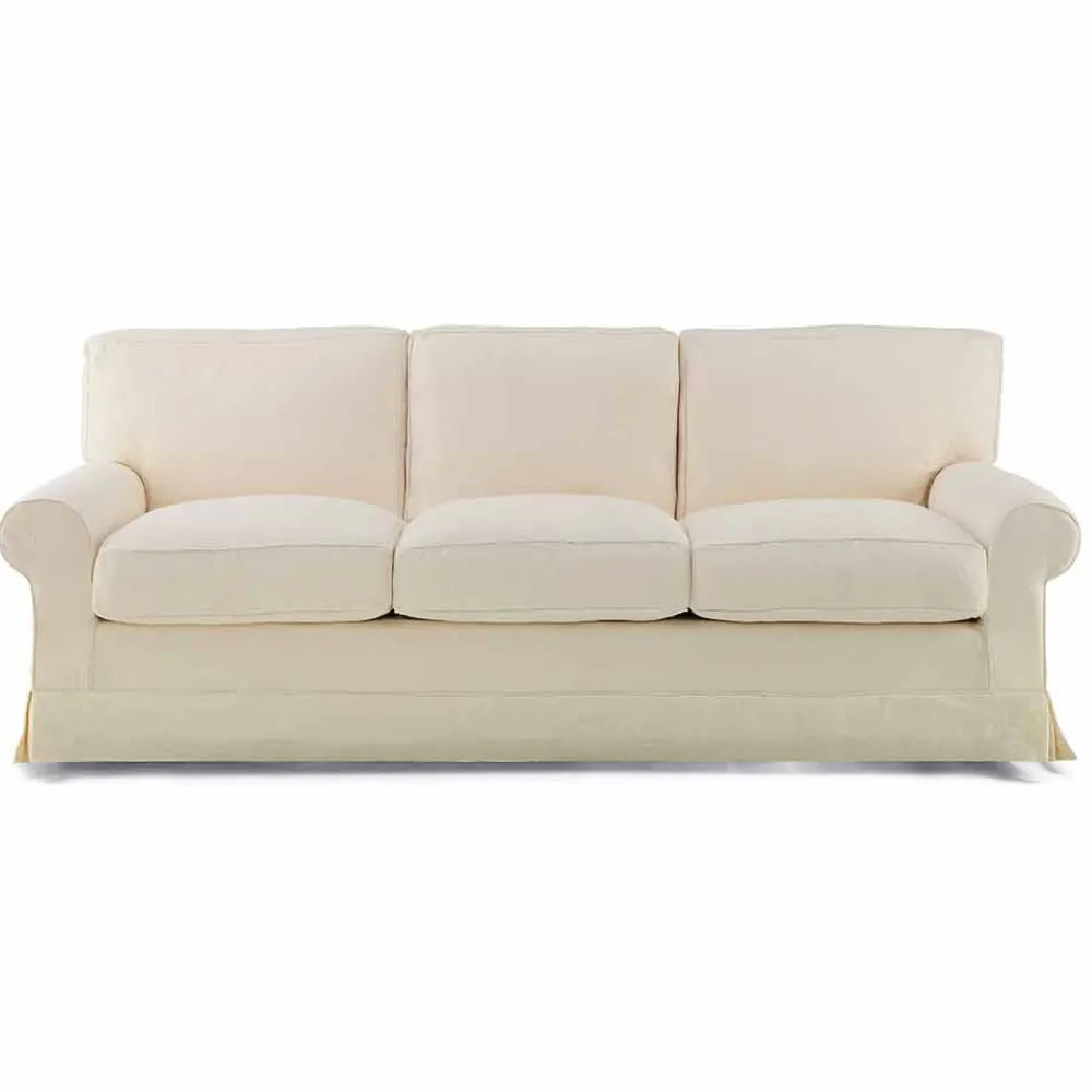 3-Sitzer-Sofa komplett in Italien hergestellt mit Innenstruktur aus Holz, gepolstert mit Polyurethanschaum und Polyesterfaserfutter, Sitz- und Rückenkissen mit Gänsedaunen gepolstert mit Polyurethanschaumeinsatz und Stoffbezug (abnehmbar) . Dieses Sofa bietet ein klassisches und elegantes Design , das sich perfekt sowohl für Umgebungen im Retro-Stil eignet, in denen es eine perfekte Harmonie mit der umgebenden Einrichtung schafft, als auch für modernere Wohnräume, in denen mit einem beispiellosen Stilkontrast für ein exklusives Spiel gespielt wird Ergebnis. und gesucht . Die für die Realisierung dieser Ergänzung ausgewählten und verwendeten Materialien ermöglichen auch einen besonders einladenden und bequemen Sitz, der ideal ist, um wunderbare Momente der Entspannung in Ihrem Wohnzimmer zu verbringen.