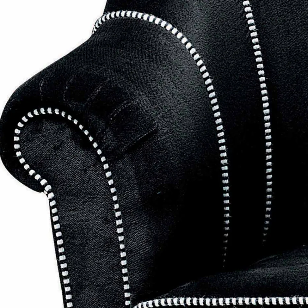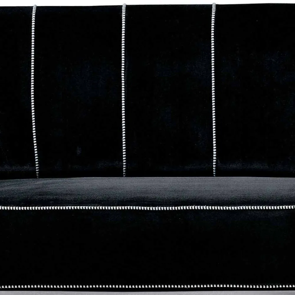 3-Sitzer-Sofa made in Italy mit Innenstruktur aus Holz mit Polyurethanschaum und Polyesterfaserfutter, Außenbezug aus schwarzem Samt mit schwarzen und weißen Besätzen ( nicht abnehmbar ). Dieses Sofa hat eine besonders schlichte und vielseitige Form, die sich dank nüchternem Design und essentiellen Formen problemlos in jeden modernen Wohnbereich einfügt. Zur Bereicherung der Ästhetik sind die kontrastierenden Nähte, die die Grundmerkmale des Sofas unterstreichen und ein Gefühl von Raffinesse und Innovation für ein innovatives Ergebnis vermitteln. Ideal für diejenigen, die einen eleganten Einrichtungsstil lieben, verfügt diese Einrichtungslösung auch über einen Samtbezug, ein Material, das den Komfort auch bei Berührung maximiert. Die für die Realisierung dieser Ergänzung ausgewählten und verwendeten Materialien ermöglichen auch eine besonders einladende Sitzgelegenheit, die ideal ist, um wundervolle Momente der Entspannung in Ihrem Wohnzimmer zu verbringen.