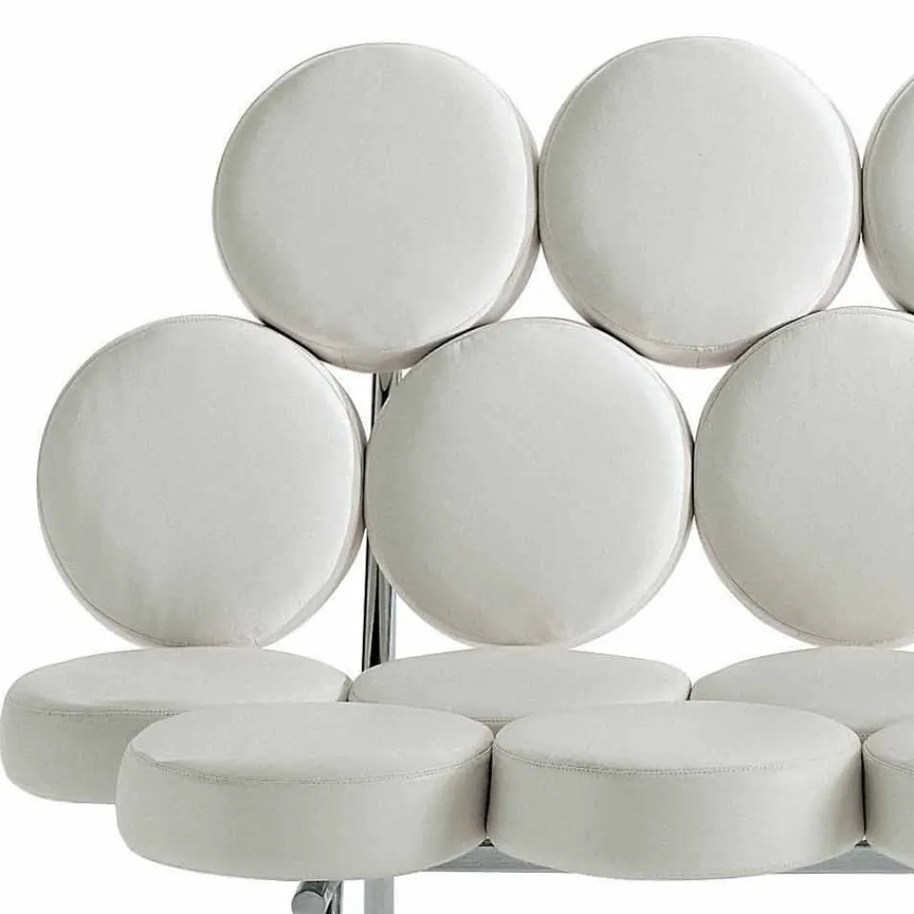 Modernes Wohnzimmersofa made in Italy mit verchromter Stahlstruktur , Sitz und Rückenlehne aus Polyurethangummi und Dacron mit äußerem Lederbezug . Eine Idee von Möbeln das die Eleganz des Leders und die Funktionalität seiner Form in sich vereint und einen bequemen und gleichzeitig originellen Sitz und einen originellen Stil bietet, ideal für diejenigen, die nach einzigartigen Artikeln suchen, die ihren Wohnbereich mit einer kreativen Note bereichern können. Sein exzentrisches Design unterstreicht seine Persönlichkeit und macht es auch zu einem originellen Dekorationselement , das jeden Raum charakterisieren und einzigartig machen kann, dessen unbestrittener Protagonist er wird.