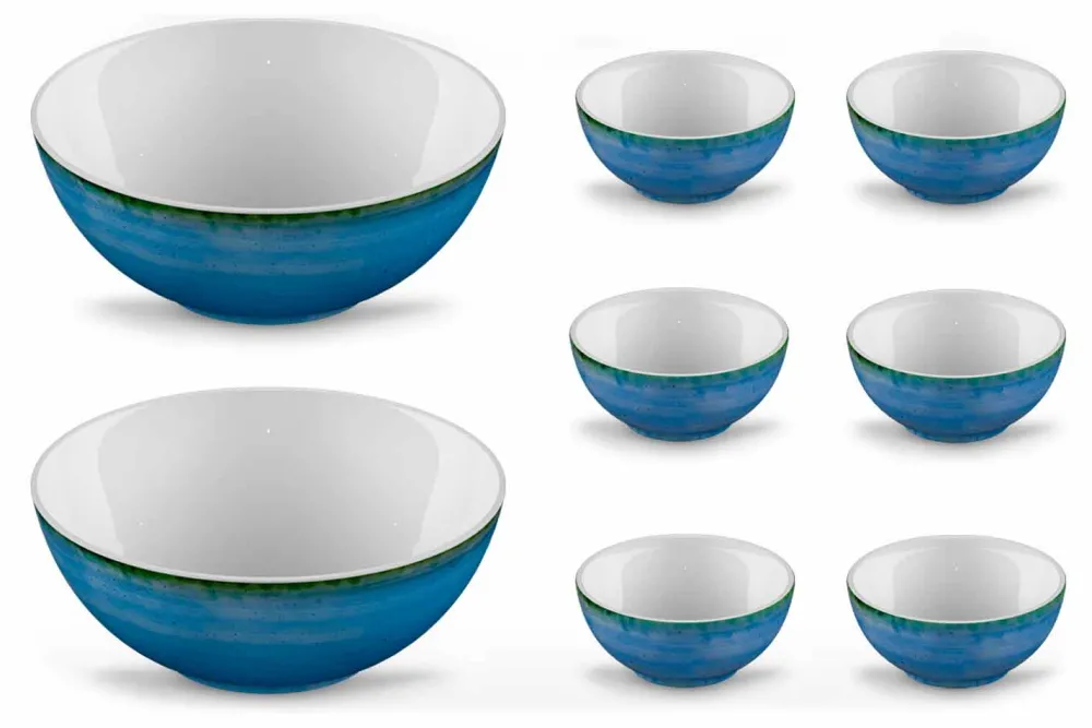 Rustikales Eis oder Obstsalatschale in modernem Design aus farbigem Porzellan, 8 Stück.