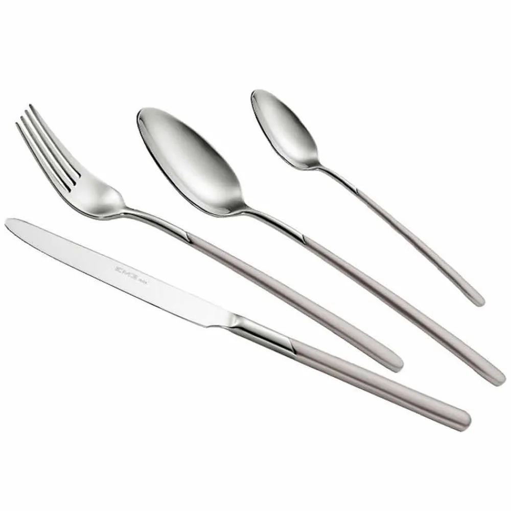 Die raffinierte hochglanzpolierte Kollektion hat einen matten Griff, der das Besteck nicht nur elegant mit einem schönen Lichtspiel macht, sondern auch einen guten Griff ermöglicht .