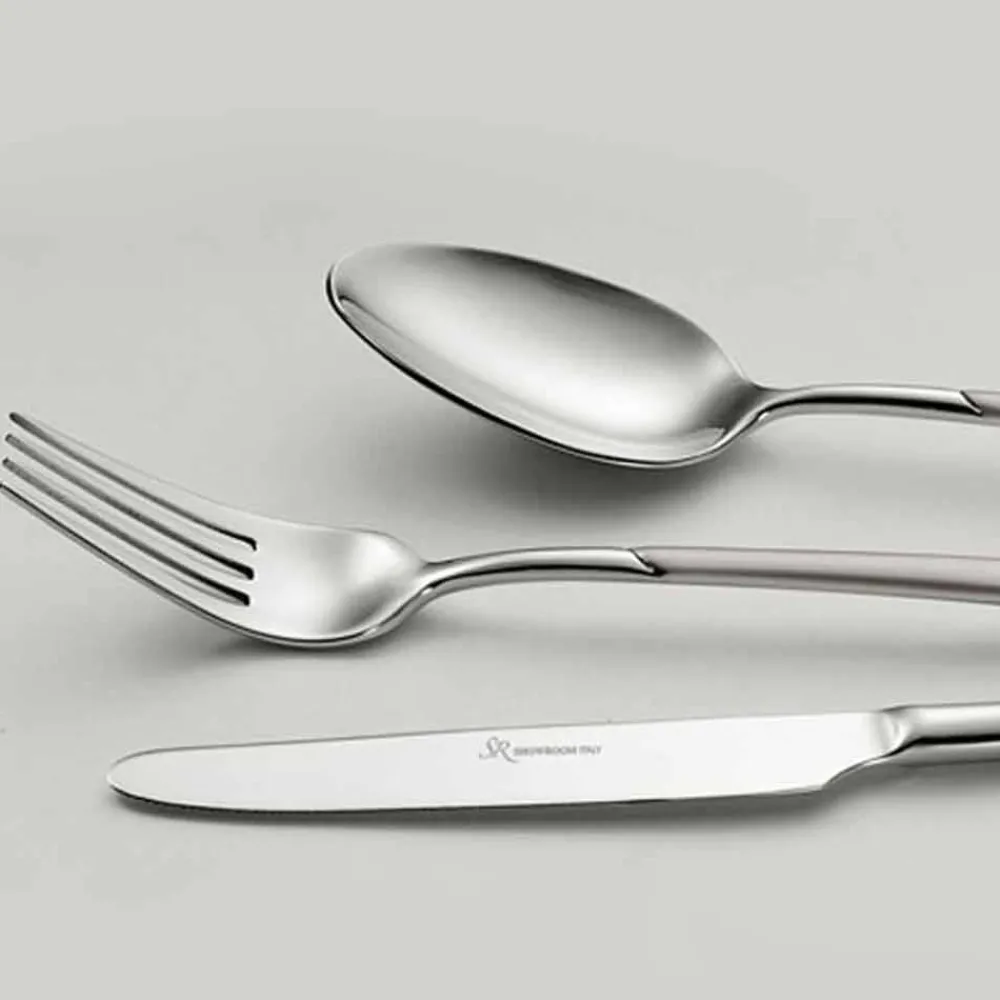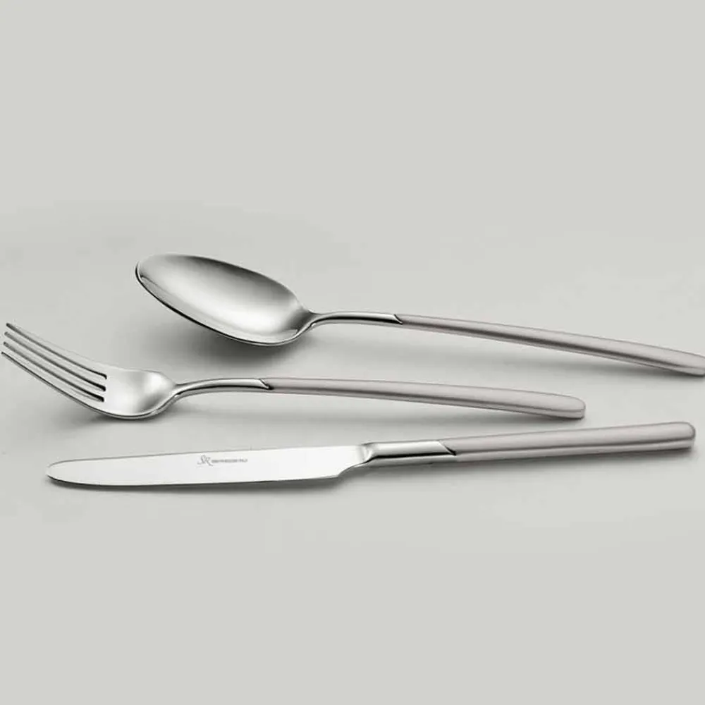 Set mit 24 Besteckteilen aus poliertem Edelstahl mit sandgestrahltem Griff aus italienischem Design.