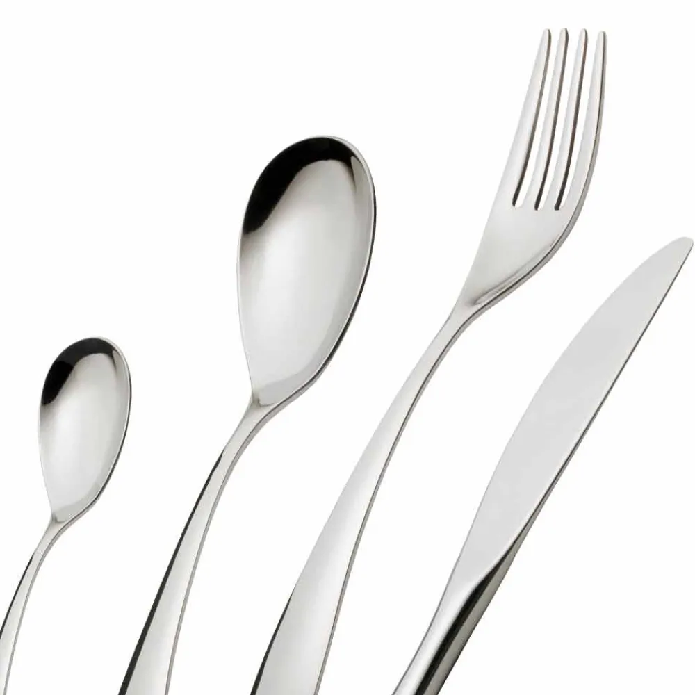 Besteck aus 24 Edelstahl mit modernem Design und glänzender Oberfläche, hergestellt in Italien.