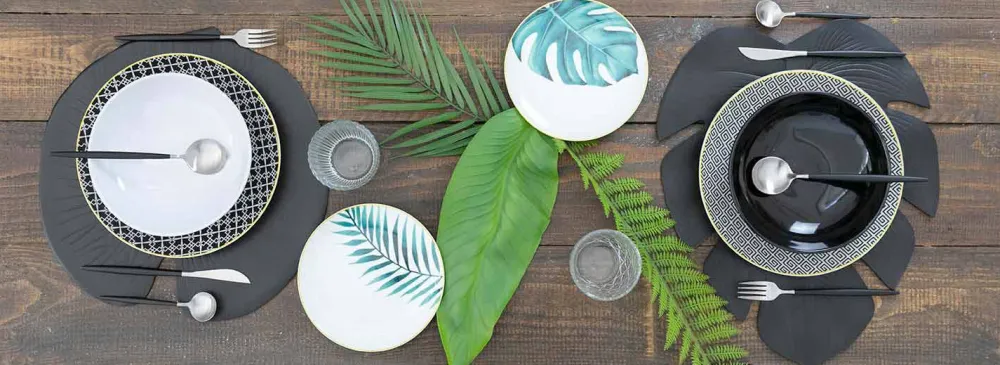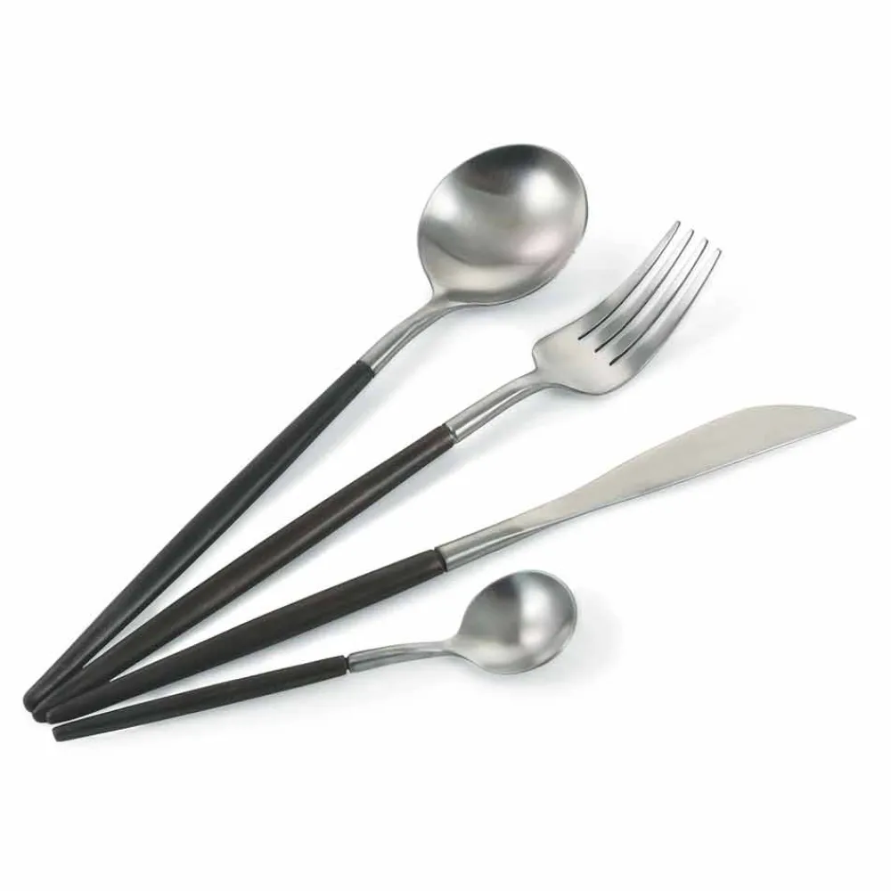 24-teiliges Besteck in modernem Schwarz und Designstahl.