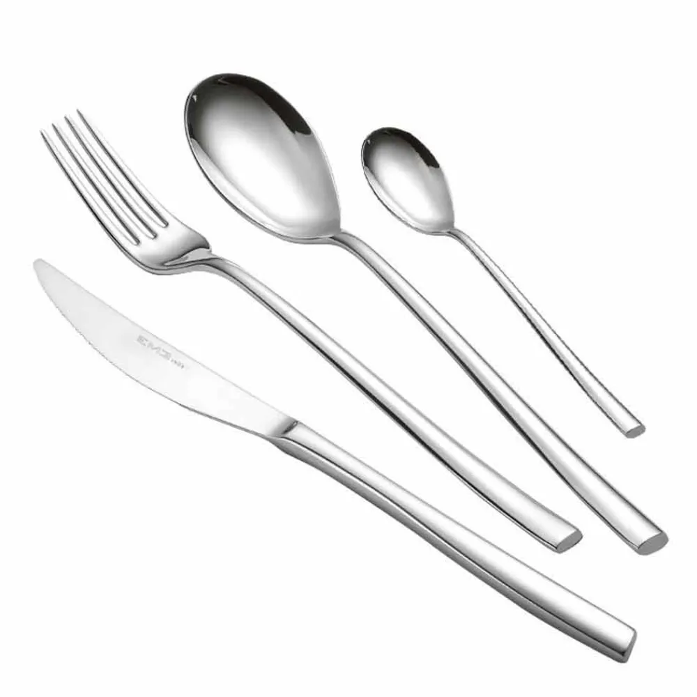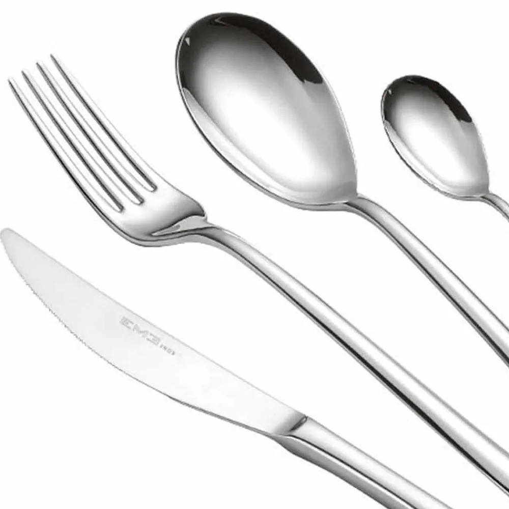 24 Edelstahlbesteck mit poliertem Finish, modernes Design made in Italy.