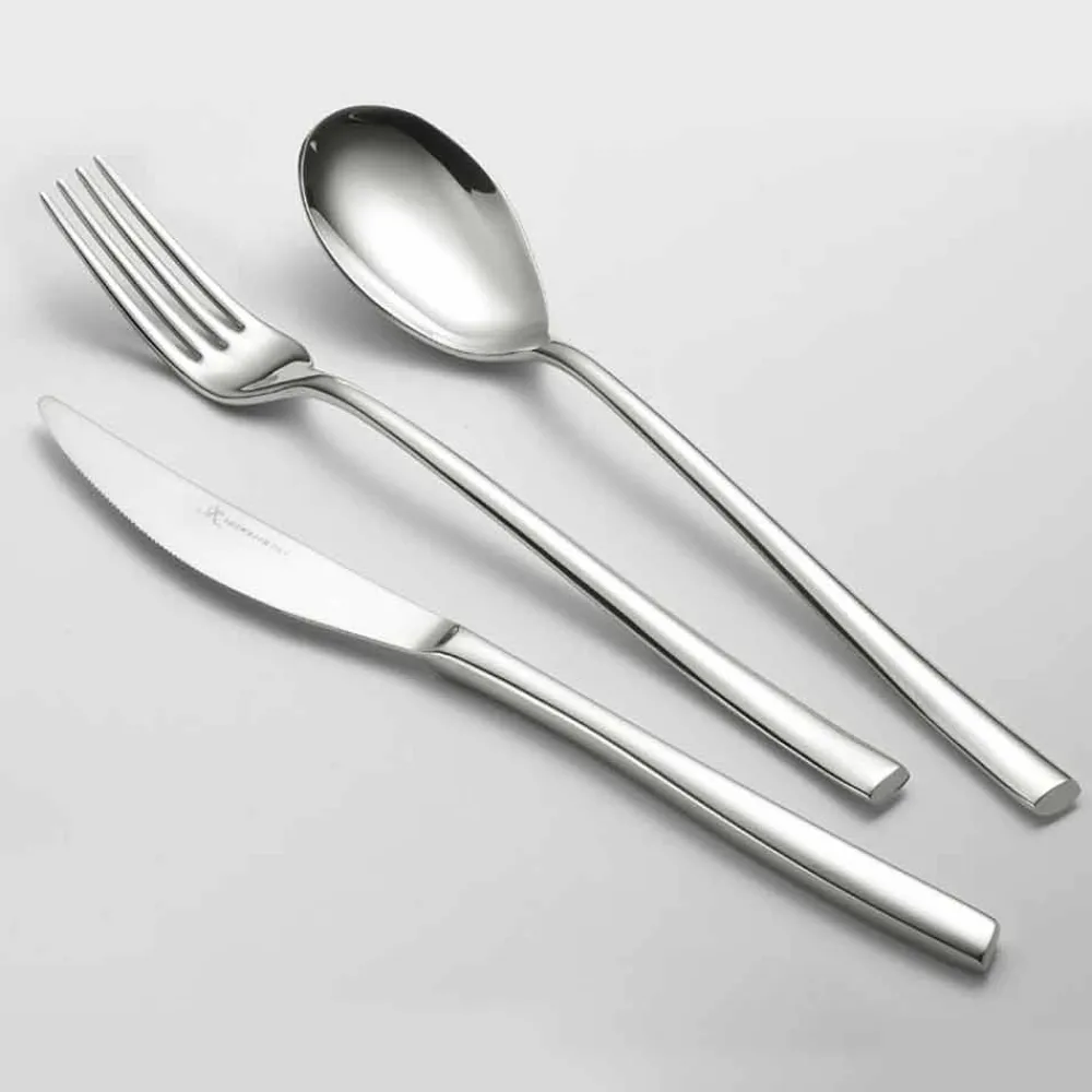 Es handelt sich um eine Sammlung von Besteck aus 18/10 Edelstahl mit 18% Chrom und 10% Nickel, die eine hervorragende Korrosionsbeständigkeit und eine einfache Reinigung mit einem hervorragenden Hygienekoeffizienten garantieren.