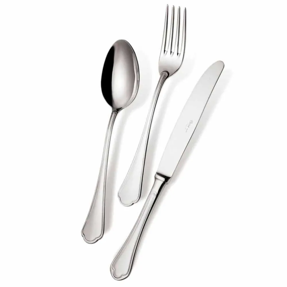 24 Besteck aus Edelstahl, komplettes Set in 5 klassischen Design-Oberflächen, hergestellt in Italien.