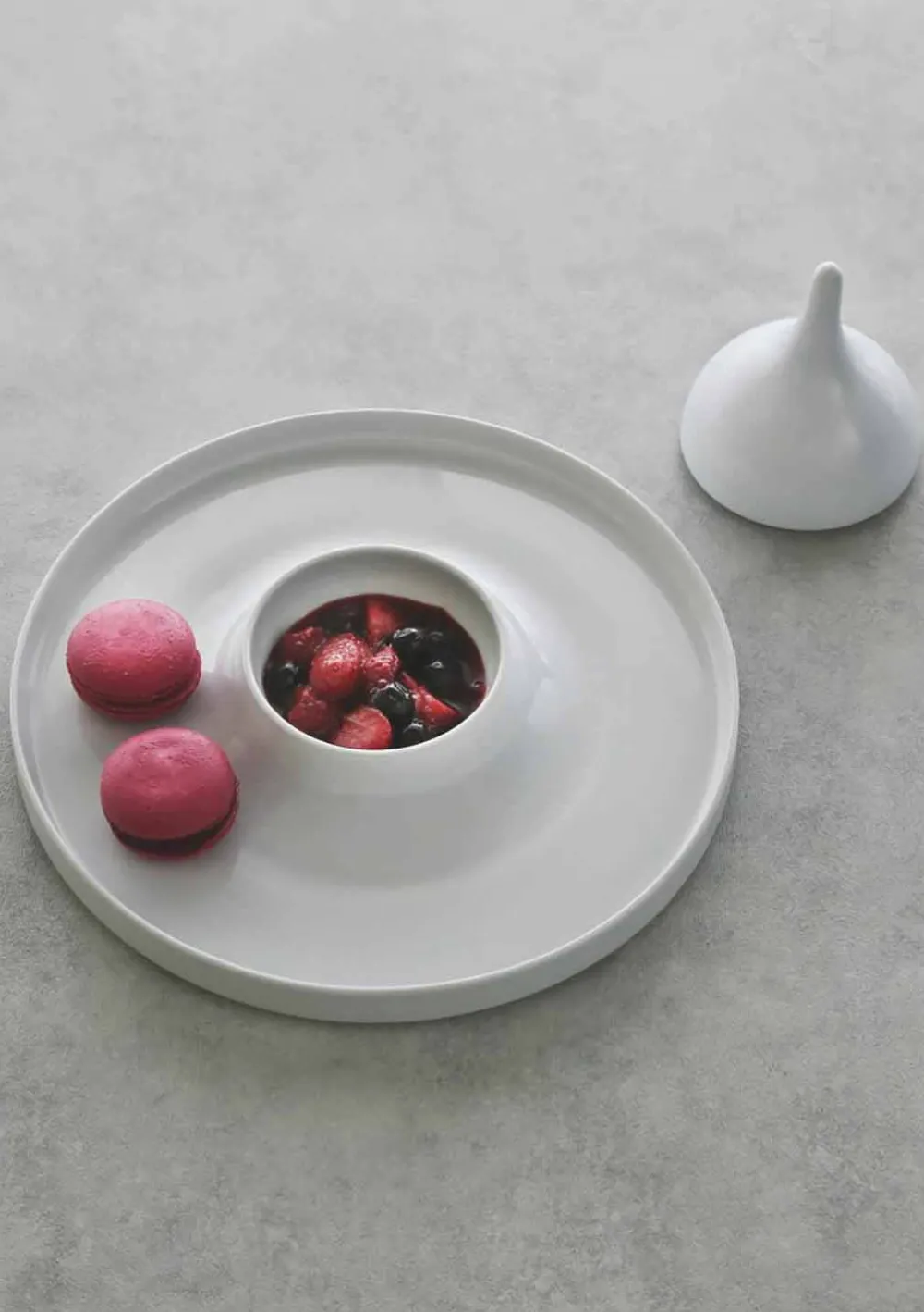 Dank seiner Fähigkeit, zeitlos zu sein und sich an jede Art von Service anzupassen, vom einfachsten bis zum raffiniertesten, erfüllt Porzellan die Anforderungen an Eleganz, Raffinesse und Nüchternheit, die für den Tisch gewünscht werden.
