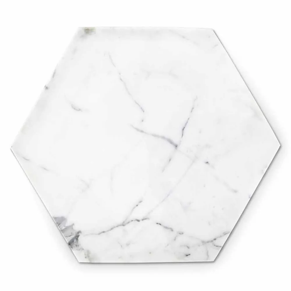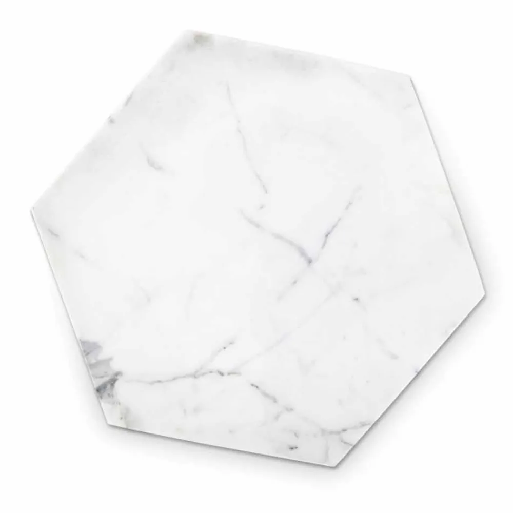 Sechseckige Designplatte aus weißem Carrara-Marmor Made in Italy.