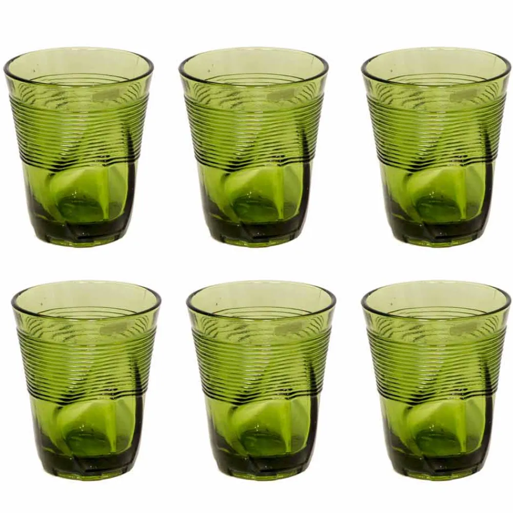 Mehrzweckgläser für Wasser, Getränke, Cocktails mit modernem Design, zerknittert in farbigem Glas, 12 Stück.