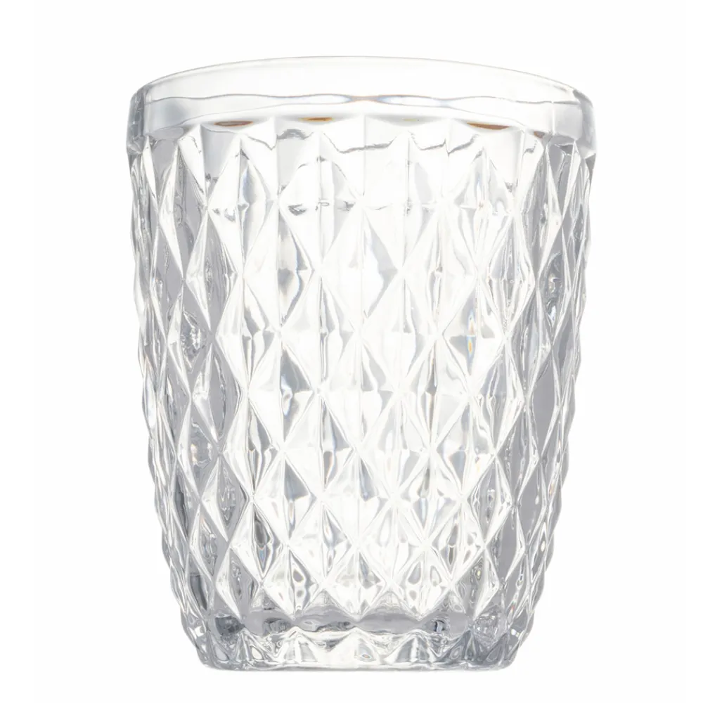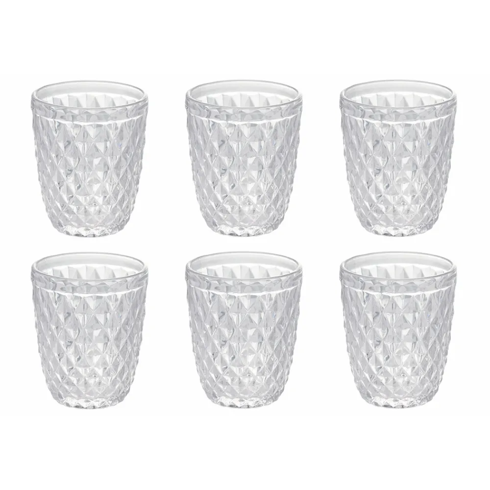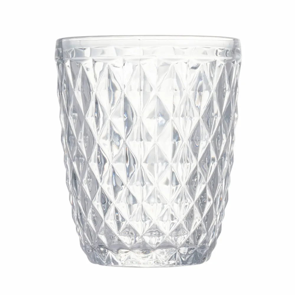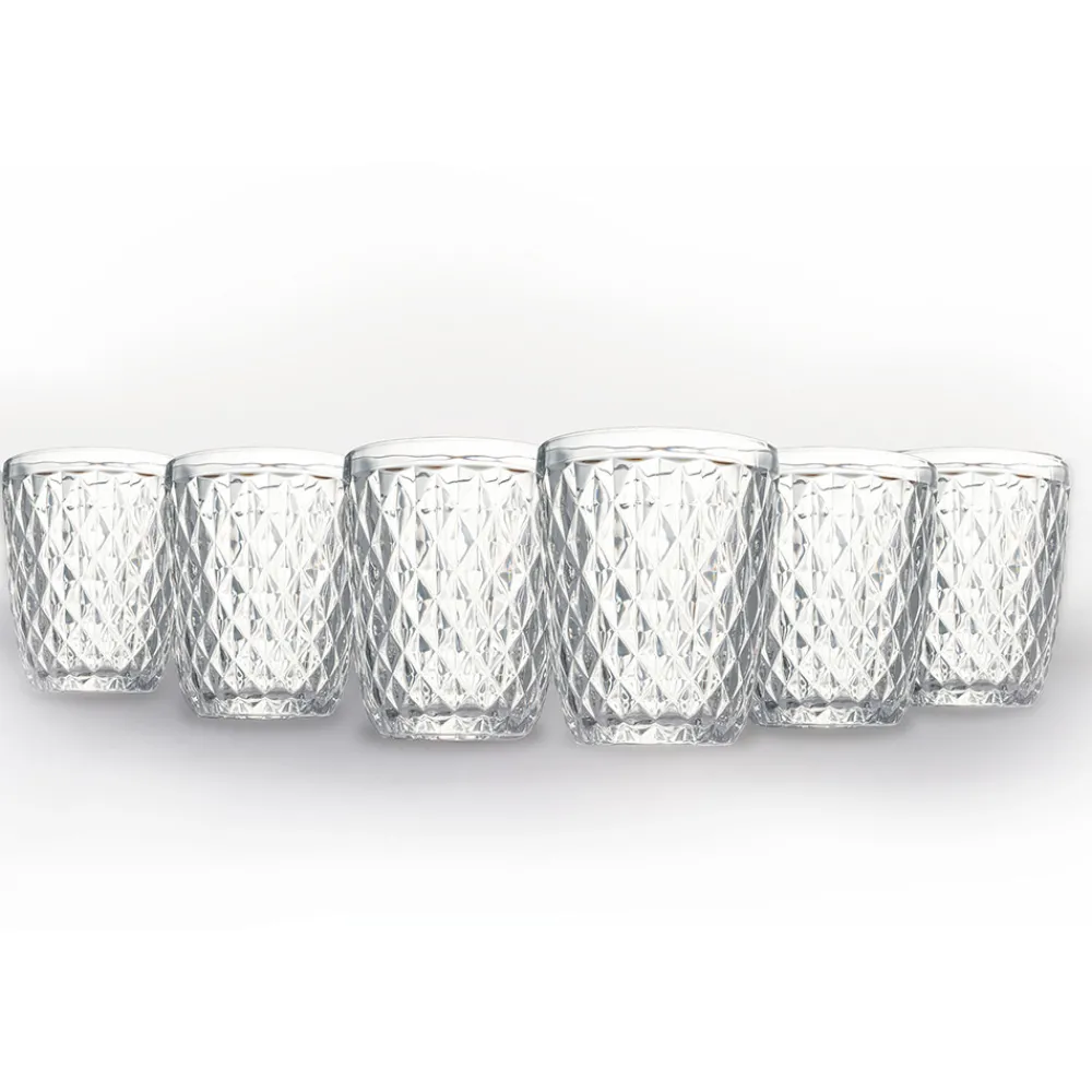 Set hohe Wassergläser aus transparentem Glas und Rautendekor, 12-teilig.