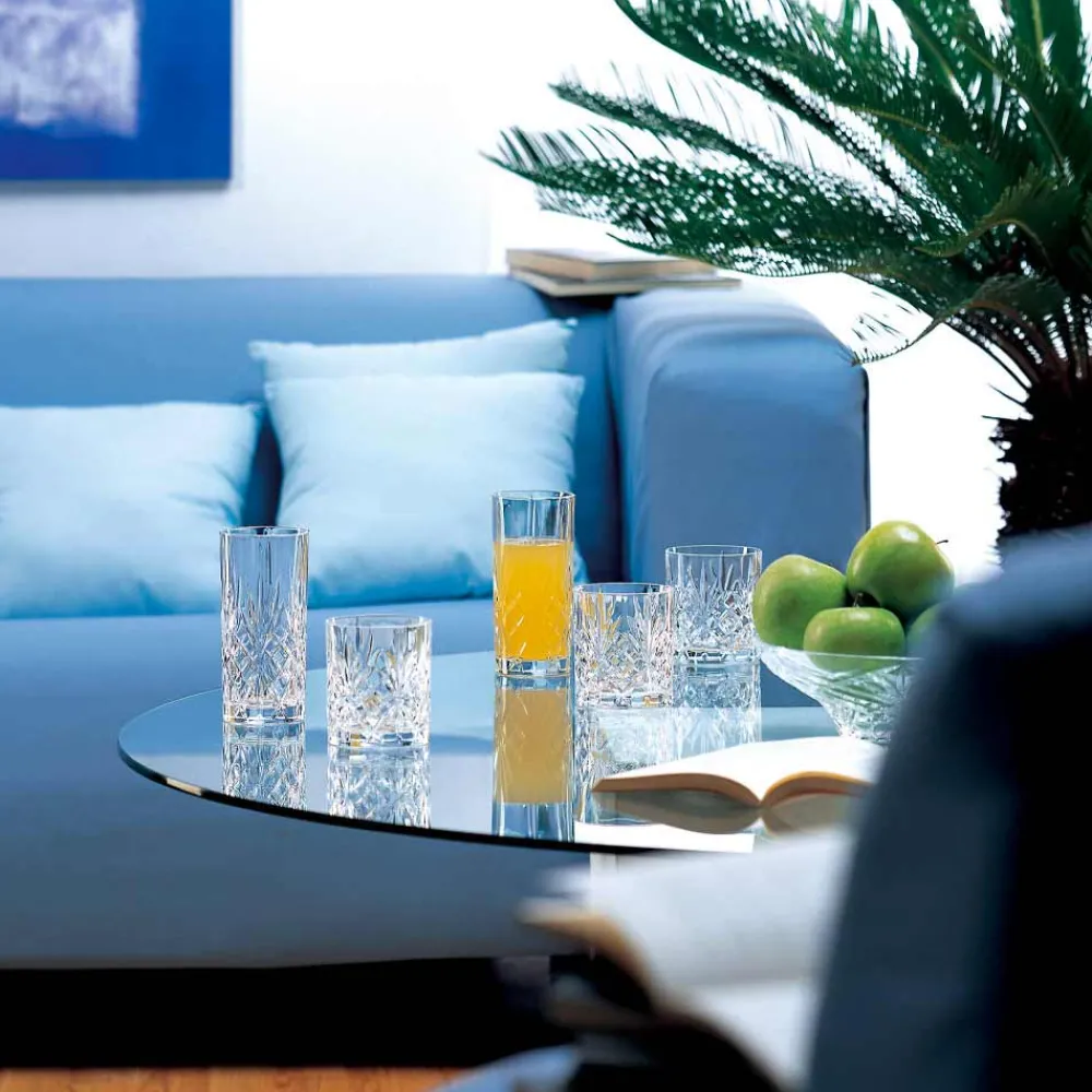 Die Stärke dieser Highball-Gläser besteht in dem Material, aus dem sie hergestellt werden: dem Öko-Kristallglas, dem ersten innovativen ökologischen Kristall, der ultraklar und waschbeständig in der Spülmaschine ist und die gleichen Eigenschaften wie Transparenz, Brillanz und Klang typisch für Kristall.