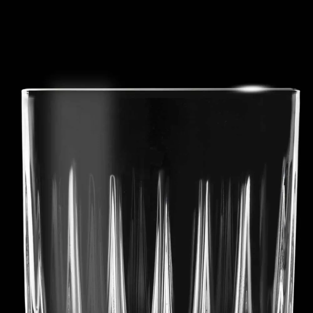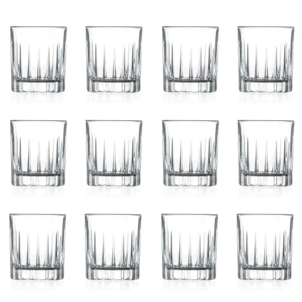 Dies geschieht mit diesem Vorschlag von 12 Likörgläsern mit zeitlosem Design und zeitloser Dekoration mit tiefen linearen Schnitten .