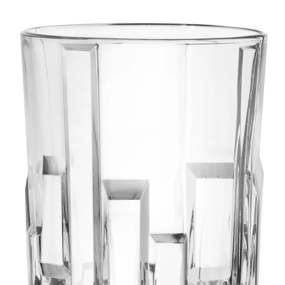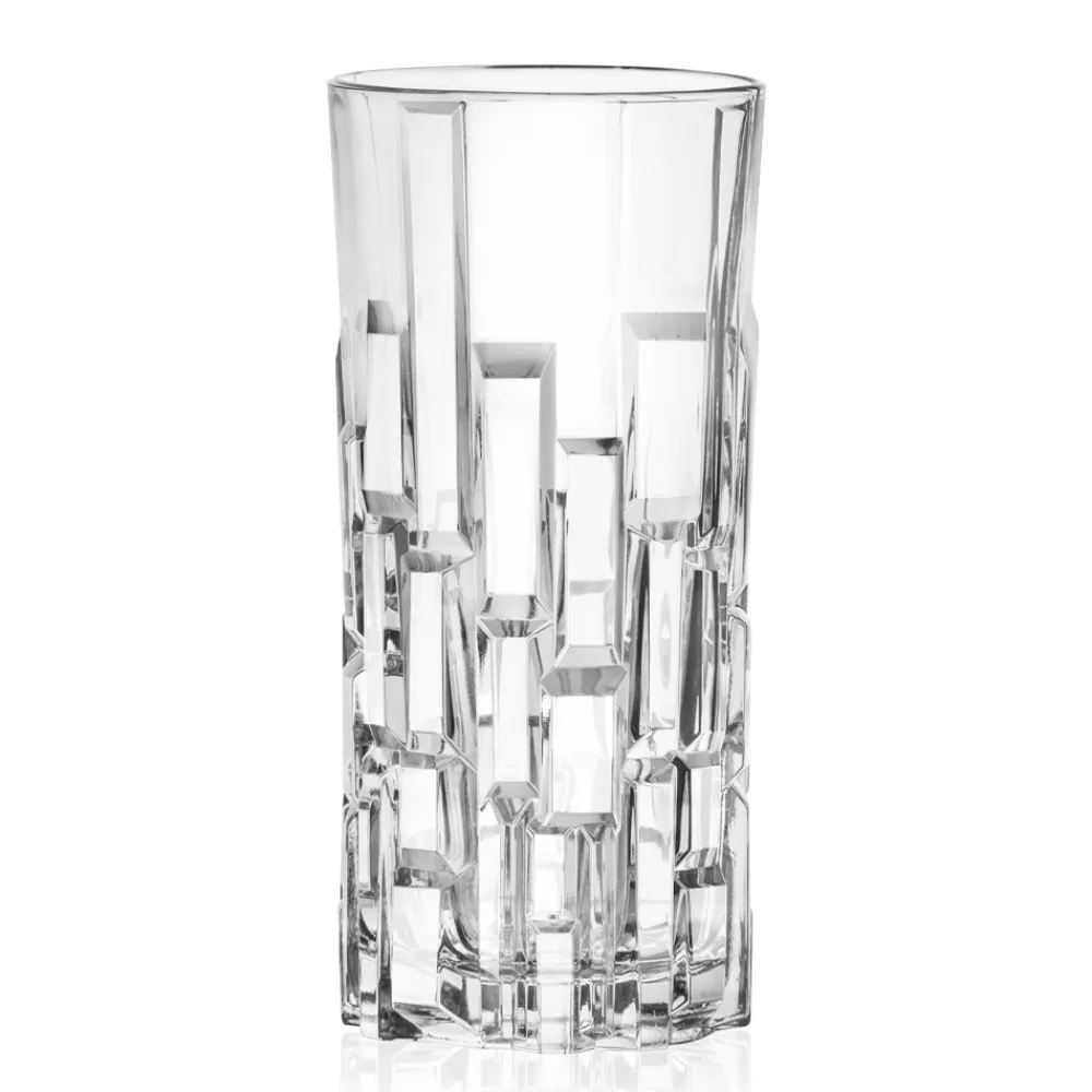 Dieses Longdrink-Glasservice für Drinks oder Cocktails zeichnet sich durch seine geometrischen Dekorationen aus, die von der Energie eines Vulkanausbruchs inspiriert sind.