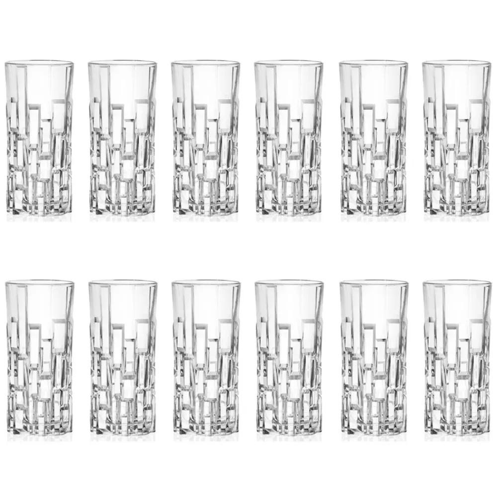 Hohe Trinkgläser aus Öko-Kristall mit Schnitzdekor, 12-teilig made in Italy.