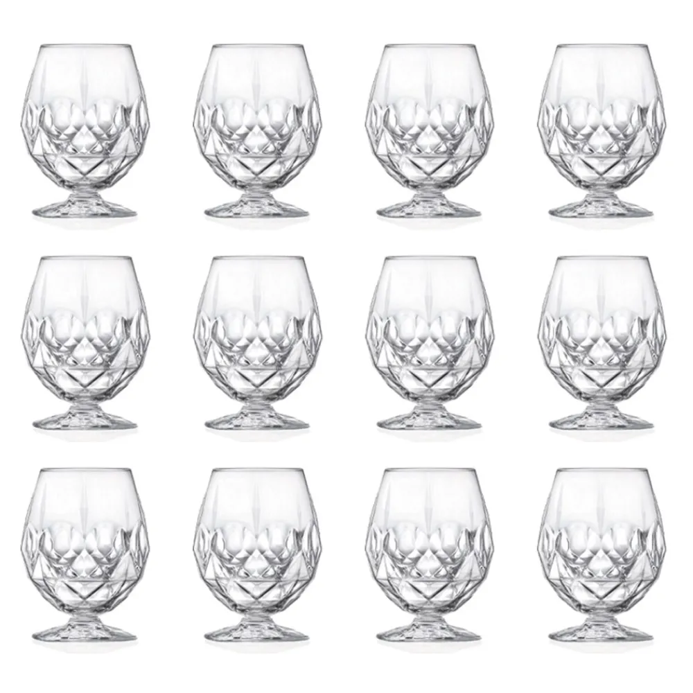 Niedriger Likörkelch aus verziertem ökologischem Kristall, 12-teilig, hergestellt in Italien.