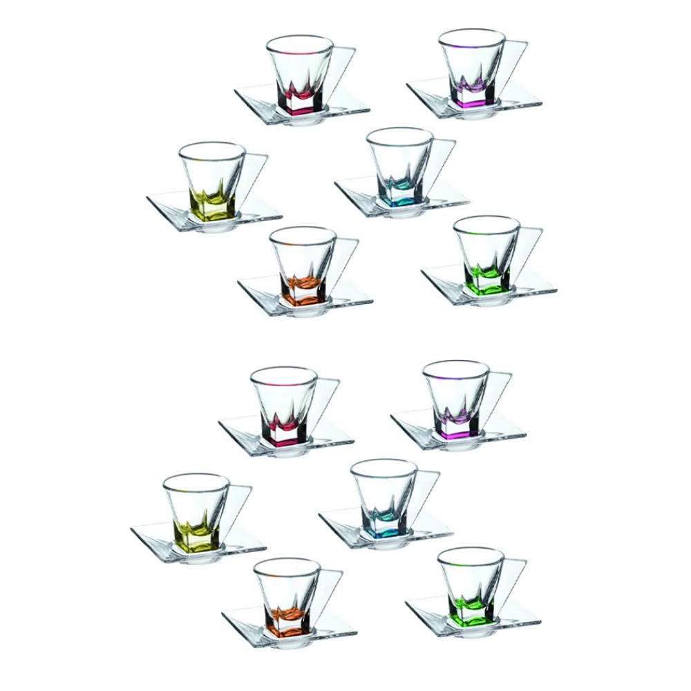 Kaffeetassen-Set aus transparentem oder farbigem Öko-Kristall, 12-teilig made in Italy.