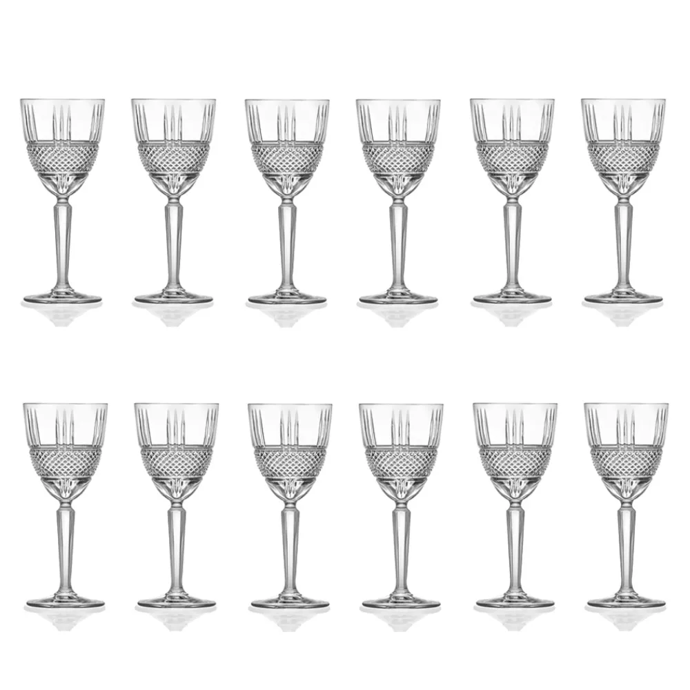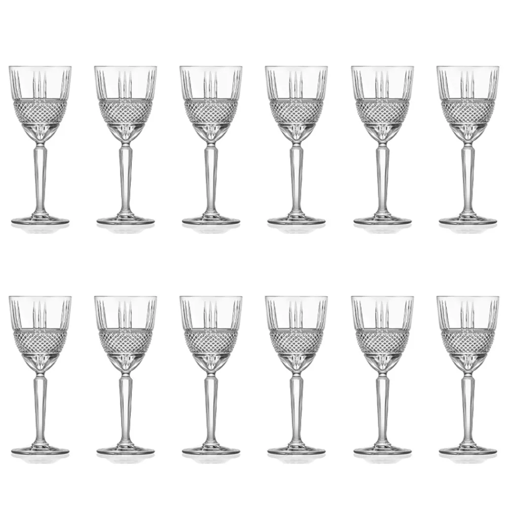 Set Wein- oder Wassergläser aus Öko-Kristall im Diamantschliff, 12-teilig made in Italy.