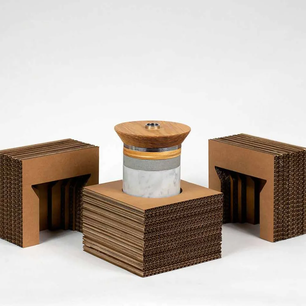 Materialien spielen eine wichtige Rolle für Produktqualität und Design : Eschenholz wird mit Speiseöl behandelt; weißer Carrara-Marmor , Sandstein und roter Verona-Marmor sind poliert und glatt; Schließlich sind die Strukturelemente aus 316 Edelstahl widerstandsfähig und langlebig.