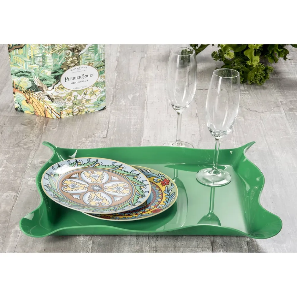 Handdrapiertes farbiges Plexiglastablett, 2 Größen und 2 Stück made in Italy.