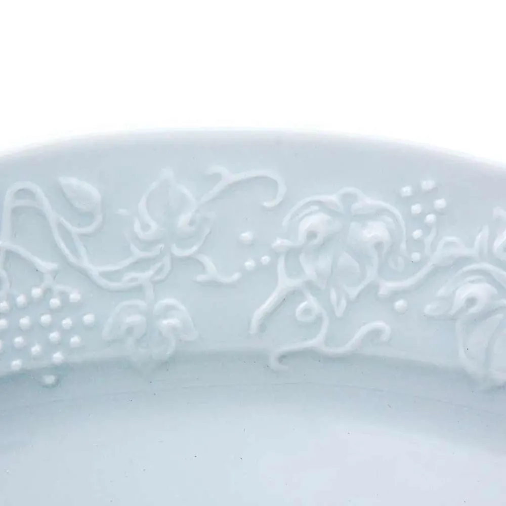 - Die Gerichte werden mit ausgewählten Limoges Rohstoffen hergestellt: ein hochwertiges Hartporzellan mit alter achtzehnten Jahrhundert Herkunft. Die hochwertige Keramikmischung besteht aus 50% Kaolin, während ein Doppelbrand (1000 ° Temperatur für den „Keks“ und 1380 ° für die Glasur des Produkts) dem Porzellan maximale Festigkeit und einen weichen Glanz verleiht.