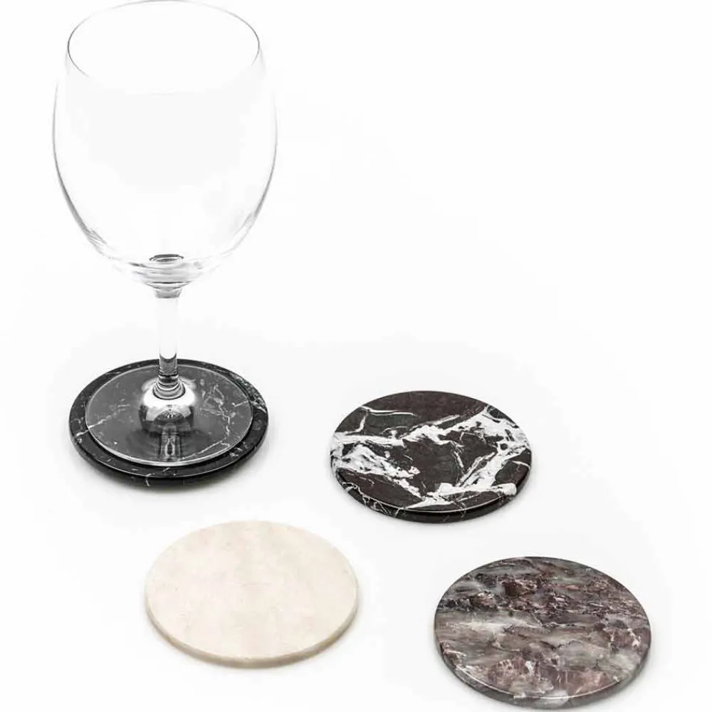 Runde Untersetzer aus rotem, rosa, grünem oder schwarzem Marmor mit darunterliegendem Kork, 2 Stück, Made in Italy
