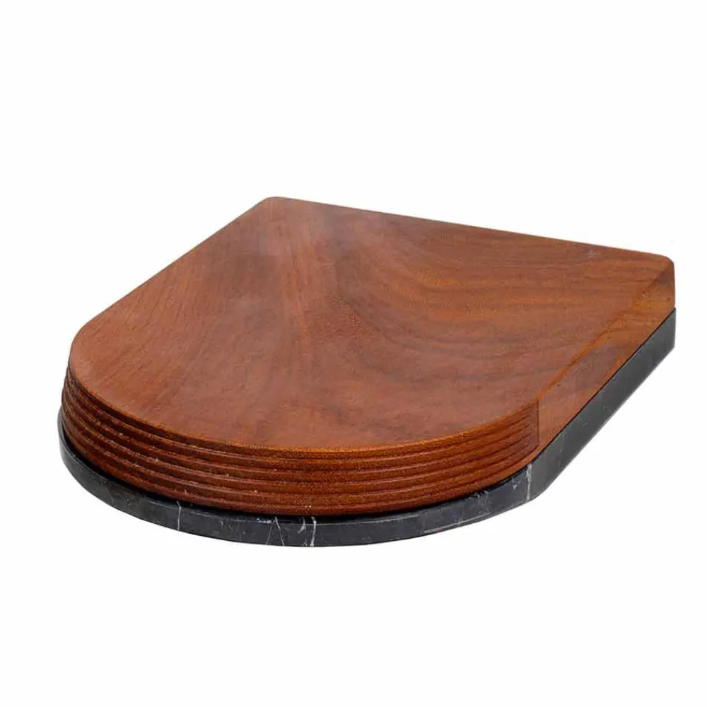 - Schwarzer Marquinia-Marmor, roter Verona-Marmor, Edelstahl 316, Mahagoniholz.