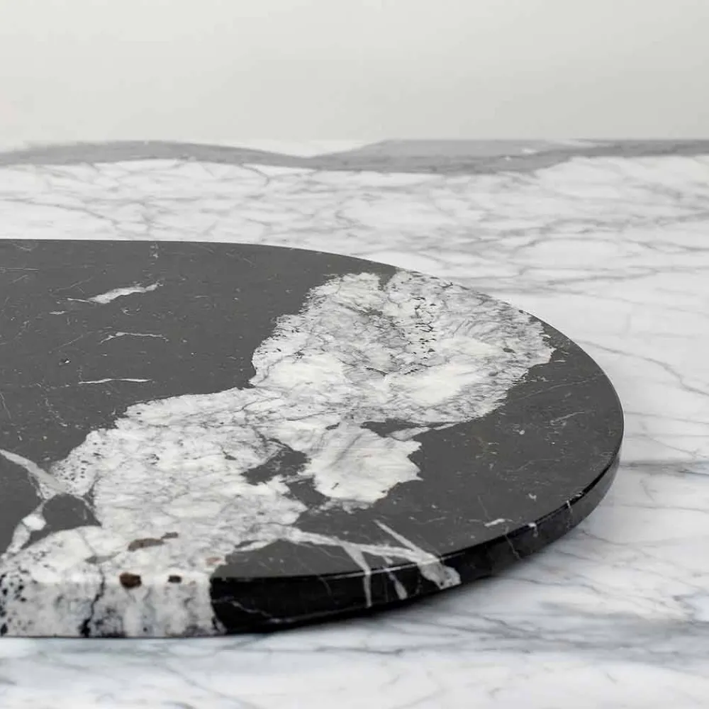 Marmor und Holz sind handgefertigte Naturmaterialien, die sich durch Adern und Knoten auszeichnen, die jedes Stück leicht voneinander unterscheiden. Daher hat jedes Stück einzigartige und exklusive Farbtöne, die vollständig in Italien hergestellt werden.