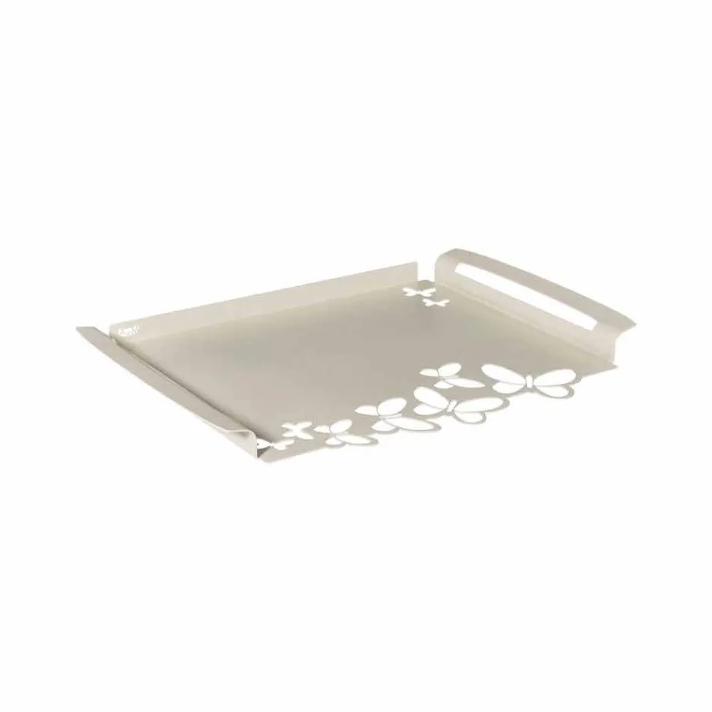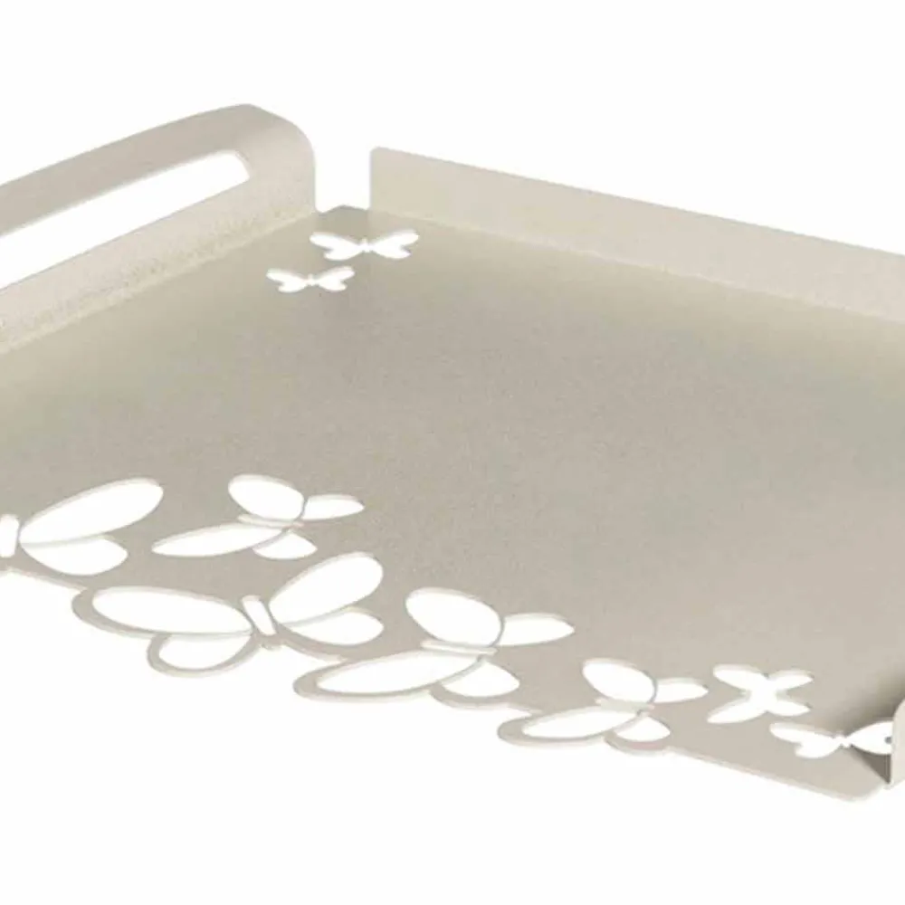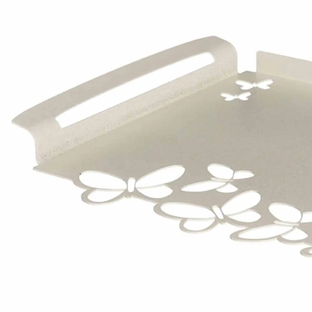 Modernes rechteckiges Serviertablett aus weißem, beigem oder elfenbeinfarbenem Eisen, handgefertigt in Italien.