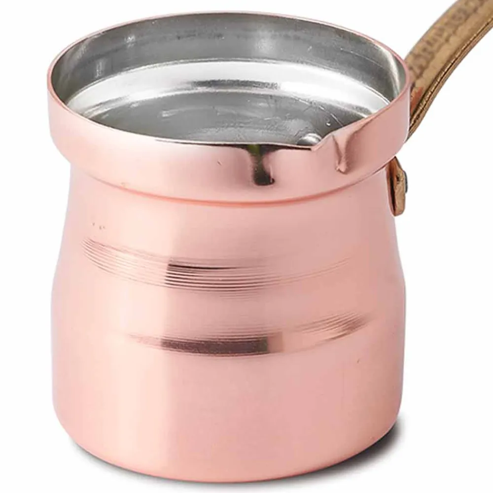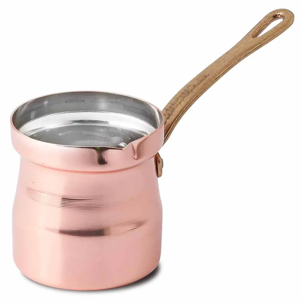 Türkische Kaffeekanne aus handverzinntem Kupfer mit Messinggriff made in Italy.
