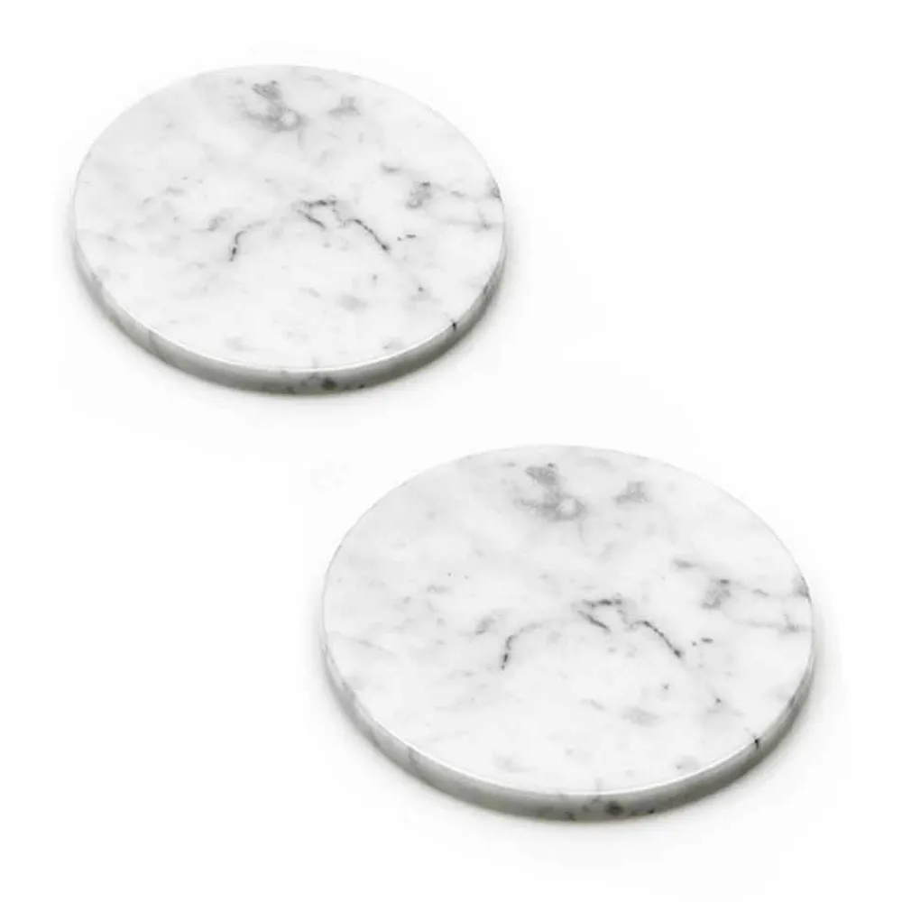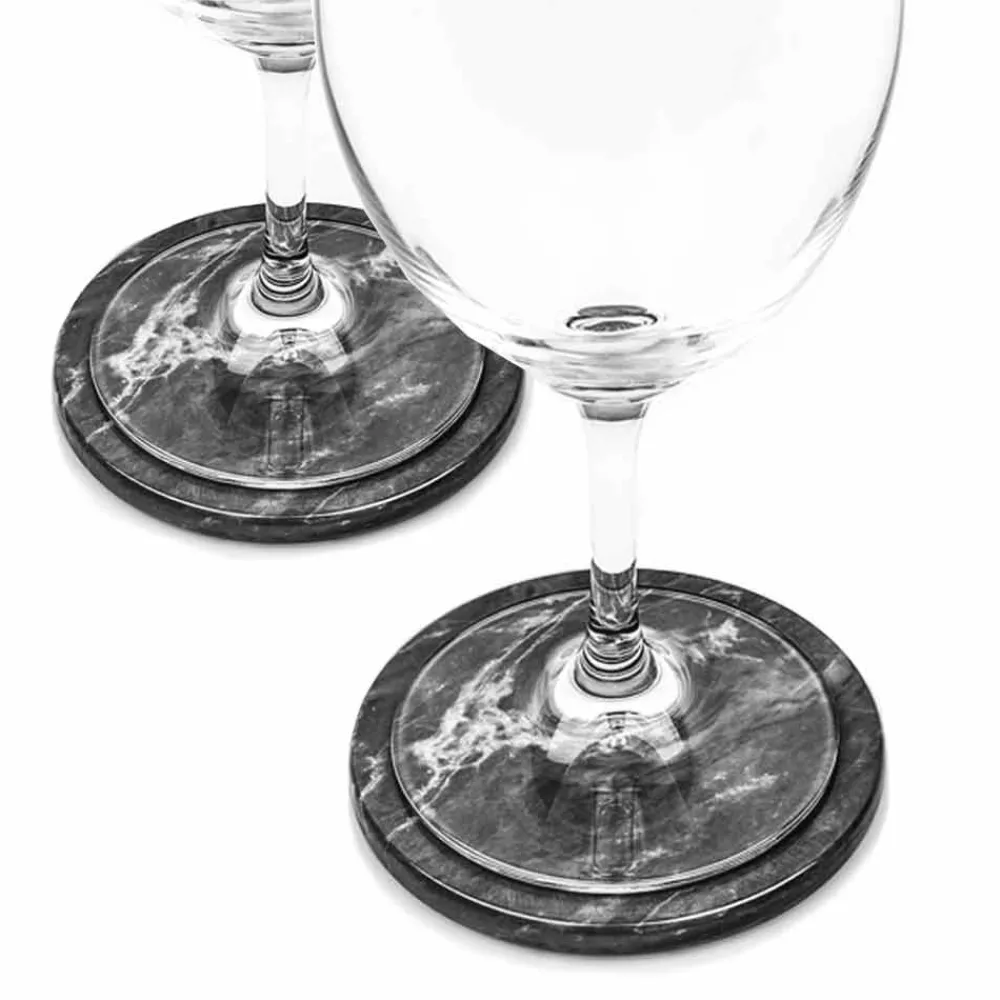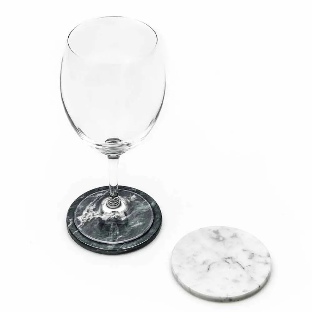Zwei runde Untersetzer gekennzeichnet durch ein elegantes und innovatives Design aus hochwertigem Edelmarmor . Dies sind Unikate da sich jeder verwendete Marmorblock von den anderen in Adern und Schattierungen unterscheidet.