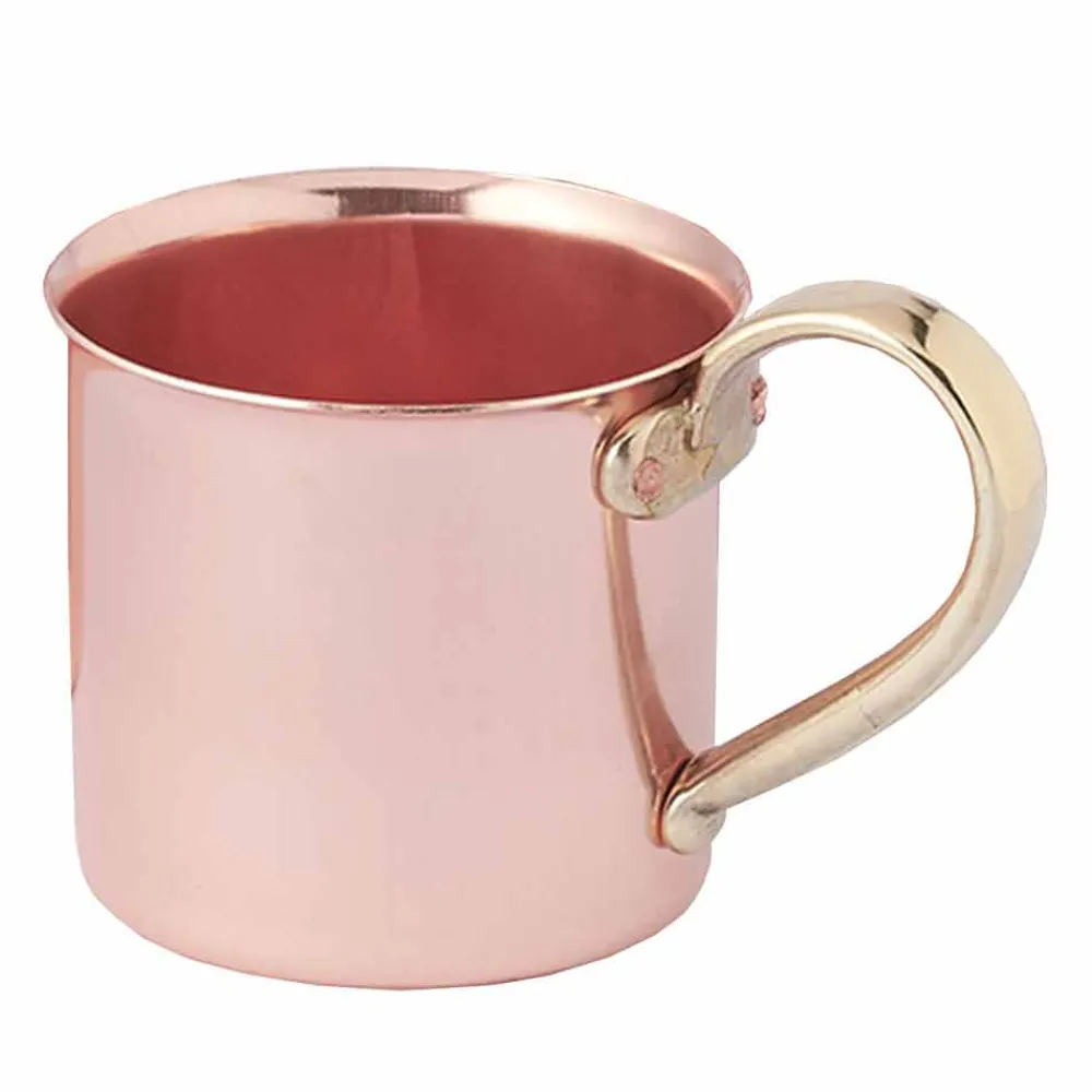 Dieser komplett aus glattem Kupfer gefertigte Becher verfügt über einen strapazierfähigen Messinggriff . Ideal für Cocktails insbesondere für den Moscow Mule, der ausschließlich mit einem kupfernen Country-Becher serviert wird, muss er innen komplett zinnfrei sein.