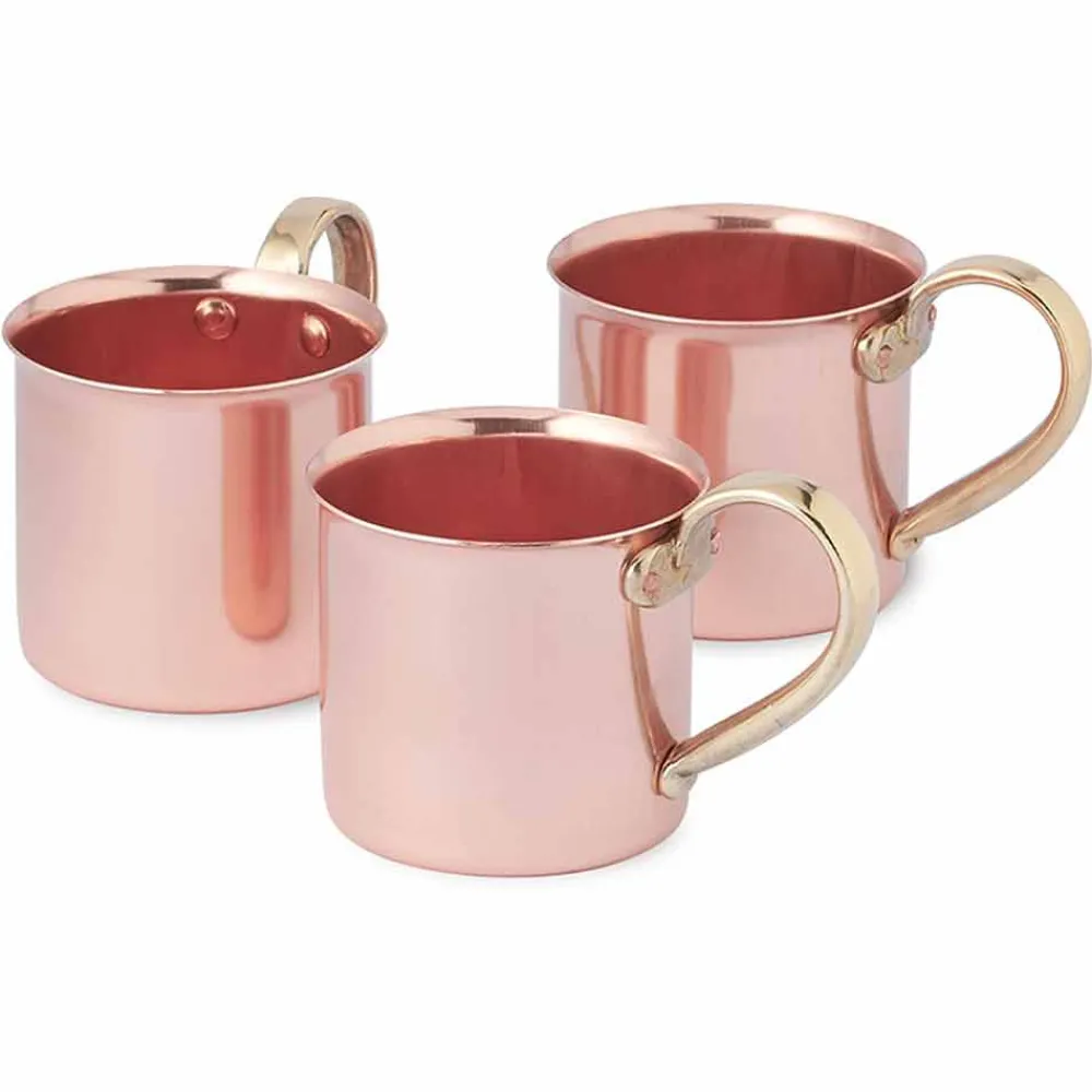 Polierter Kupferbecher mit Messinggriff, 6 Stück made in Italy.