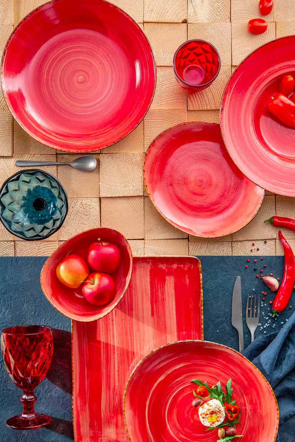 - Chilirot : Eine würzige und faszinierende Farbe, die die weichen und überzeugenden Linien der Gerichte unterstreicht. Ein attraktiver und tiefer Hauch von Rot für überzeugende individuelle Akzente beim Servieren.